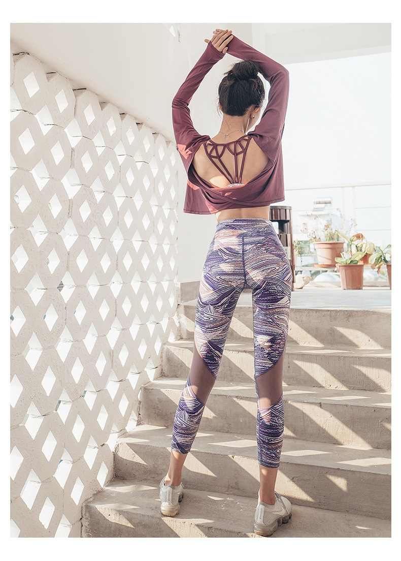Strap back detail Form-fitting design Wide-cut stretch underband for added support Printed design leggings Bodycon fit A tight cut to the body