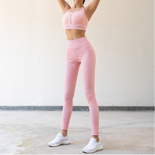 Polka dot design Mesh insert top High rise leggings A tight cut to the body