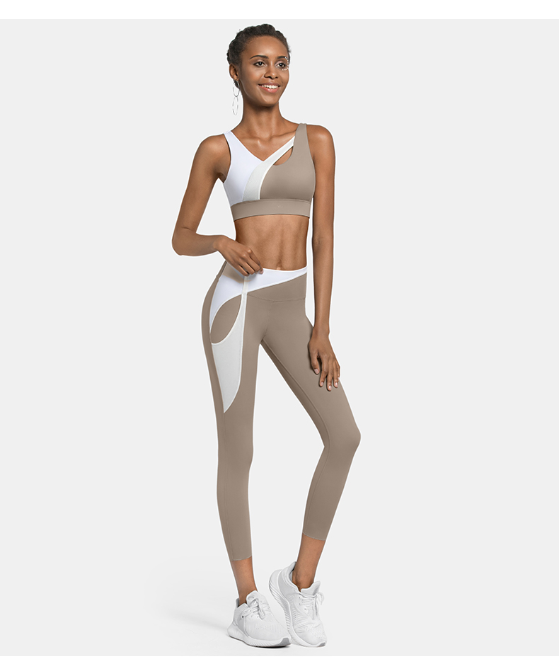 VFU DESIGN GREY STONE AND WHITE BRA TOP AND MATCHING LEGGINGS