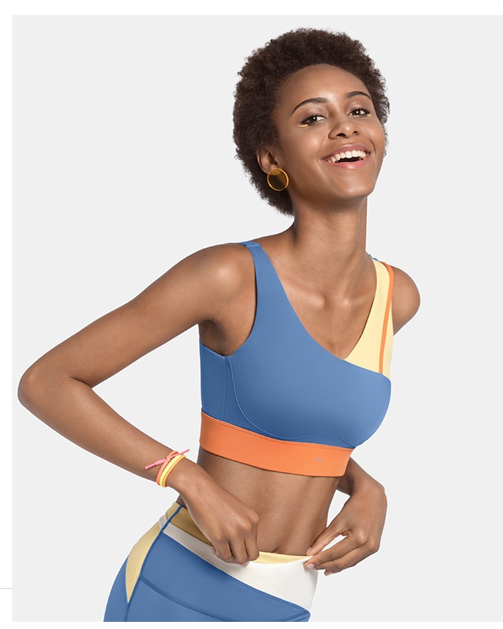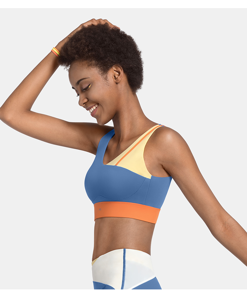 Contrast color design Padded cups Supportive underband for a secure fit