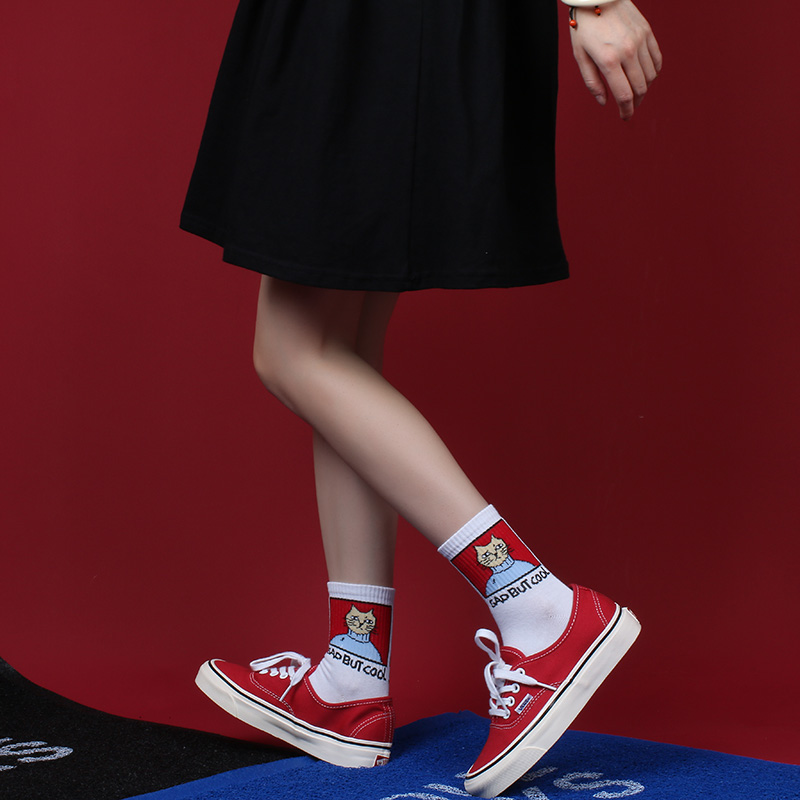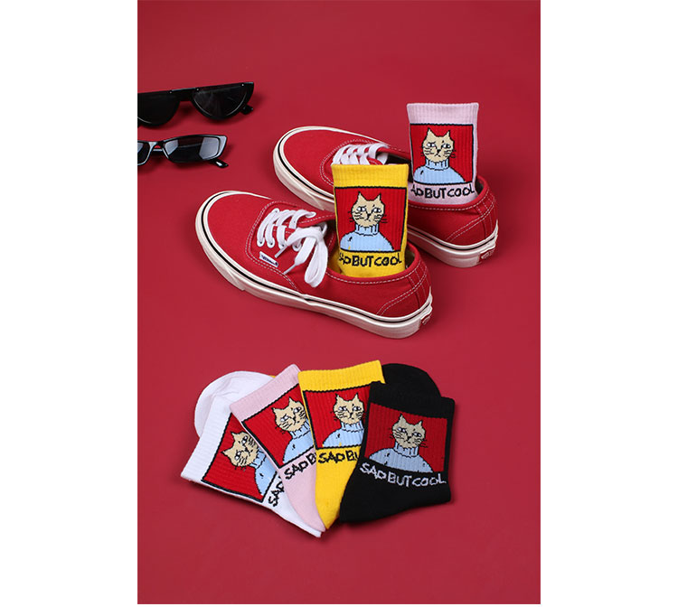 ZWILL UNIQUE CHILL CUTE KITTEN CARTOON PRINT SOCKS