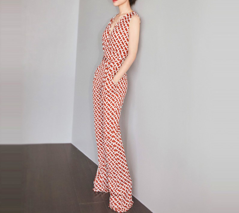 BBL DESIGN WRAP FRONT TILE PRINT JUMPSUIT