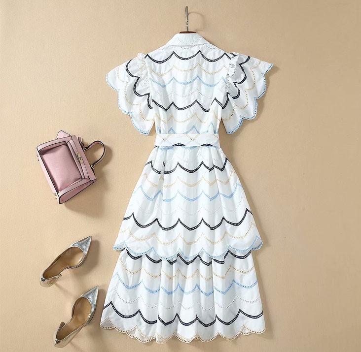 BBL DESIGN FRILL LAYERED MIDI SHIRT DRESS IN PRINT