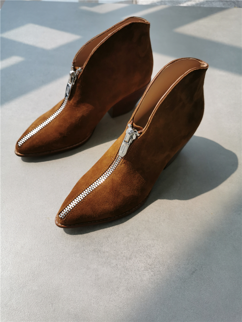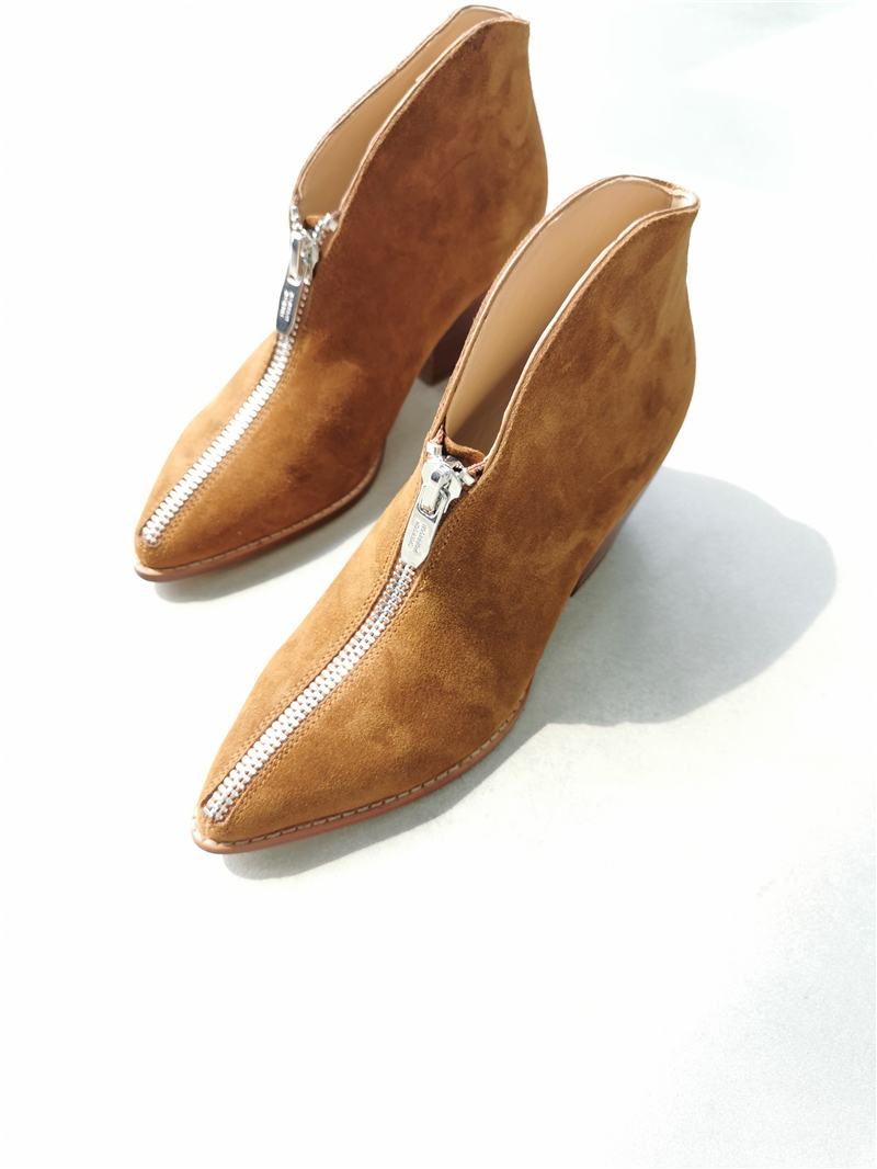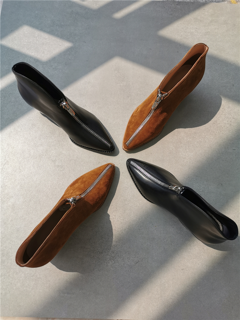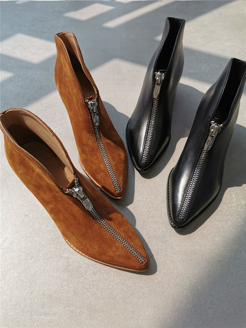 SIGERDORI DESIGN ZIP FRONT HEELED ANKLE BOOTS