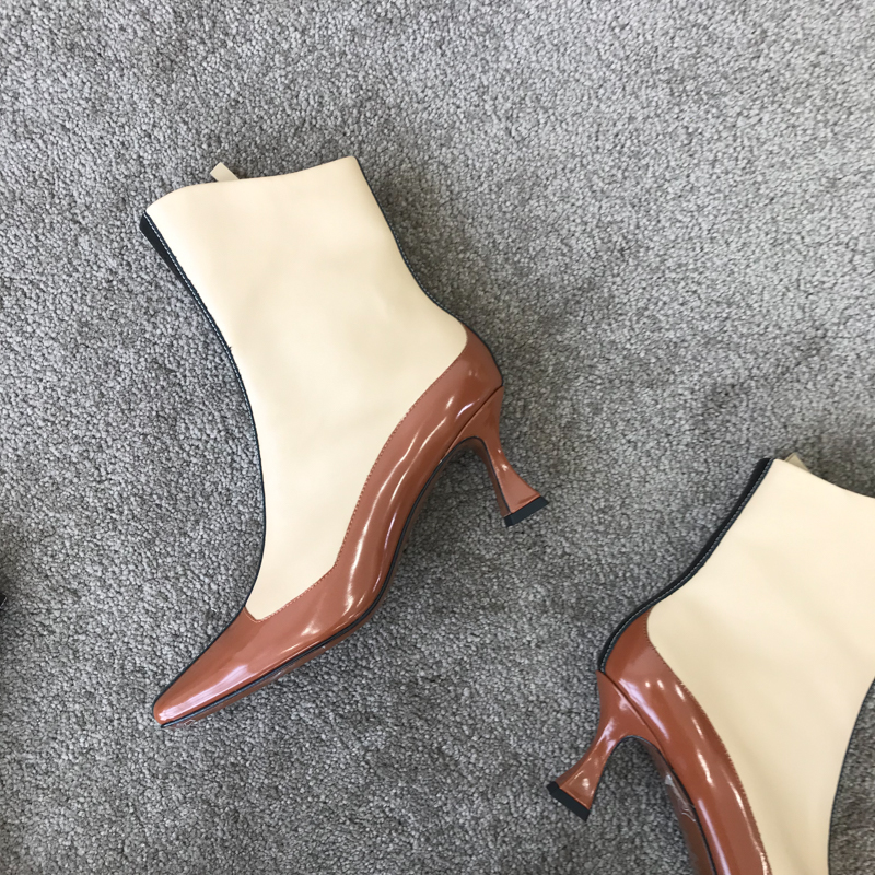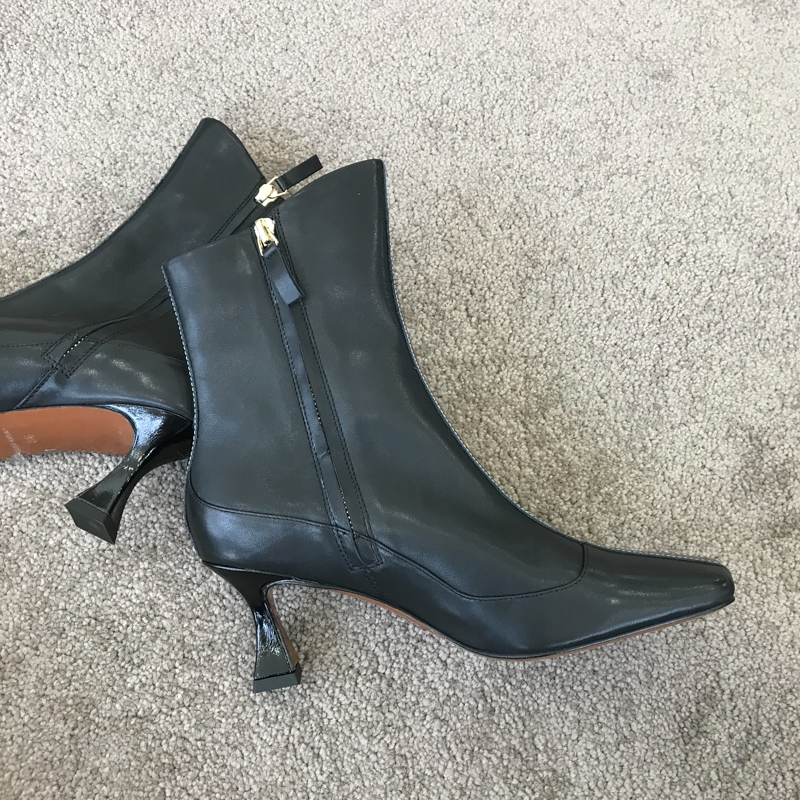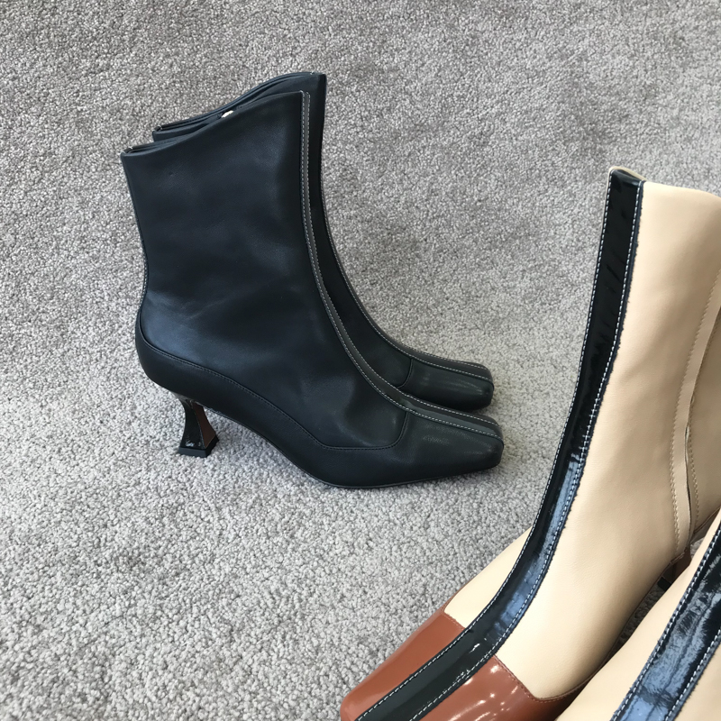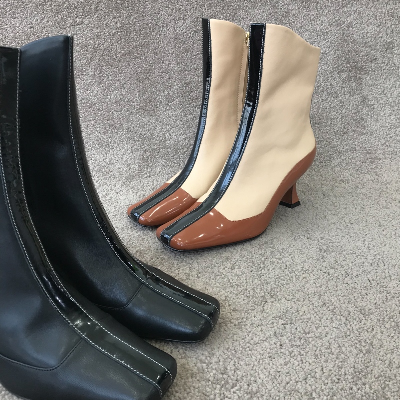 Square toe Zip-back fastening Exaggerated heel detail 100% real leather