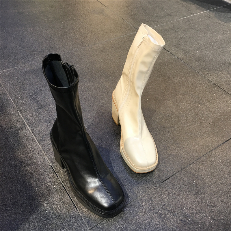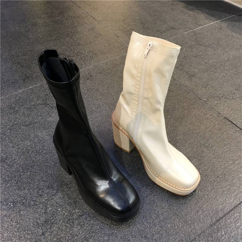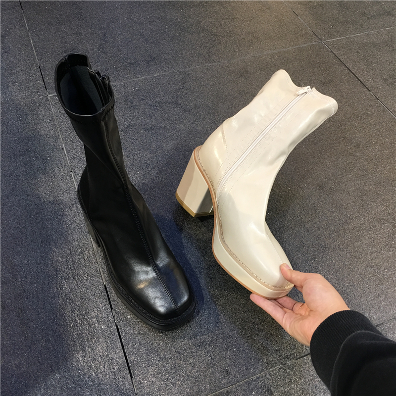 LUXE SEVEN DESIGN HEELED CHUNKY ANKLE BOOTS