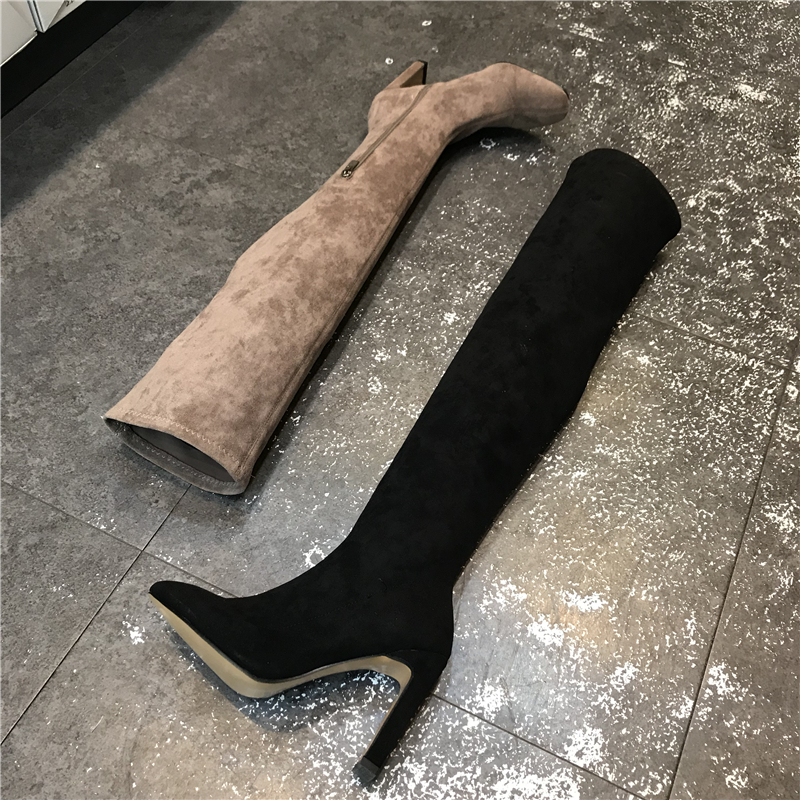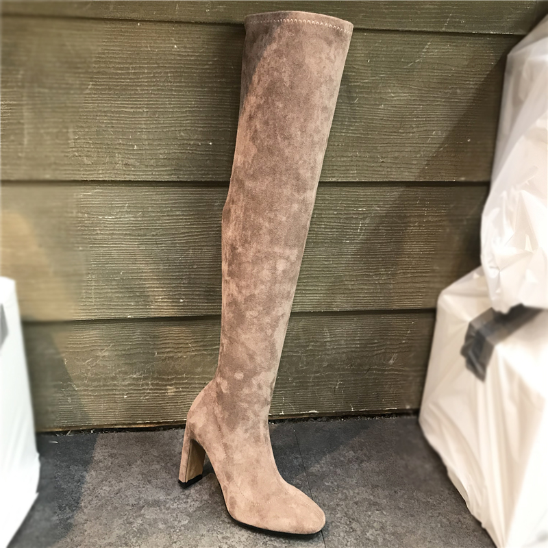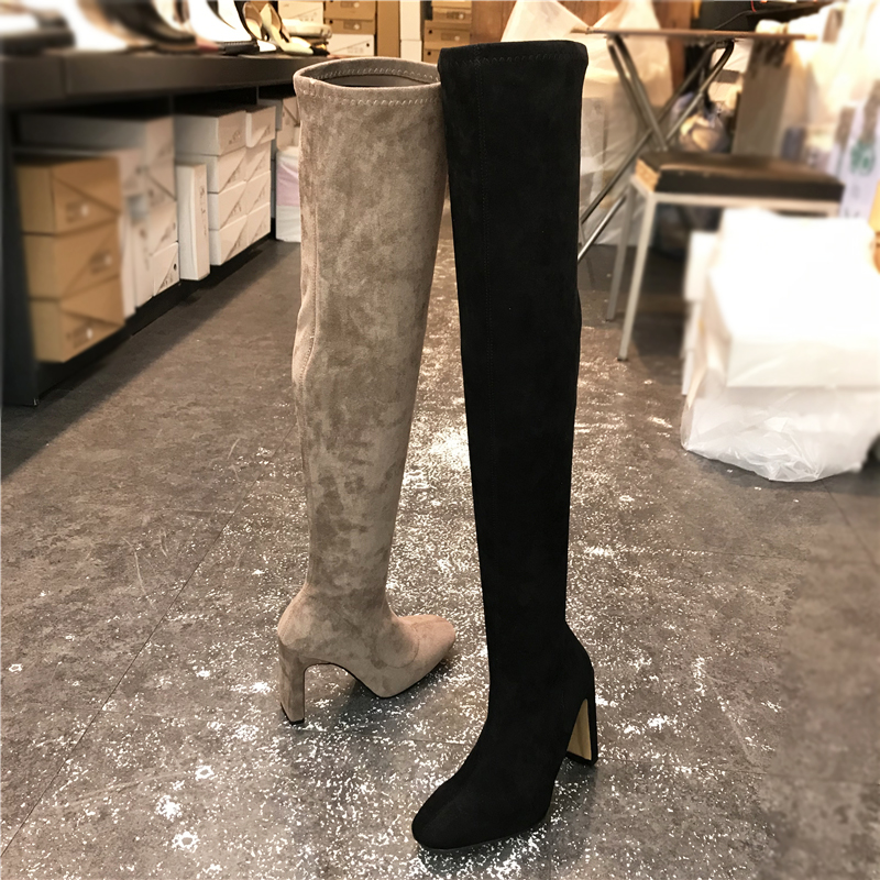 Over-the-knee design Zip-side fastening Square toe High block heel