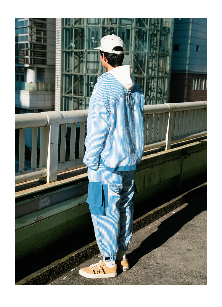 KIKO GORLA STRIPED SEERSUCKER CASUAL JOGGER PANTS IN BLUE