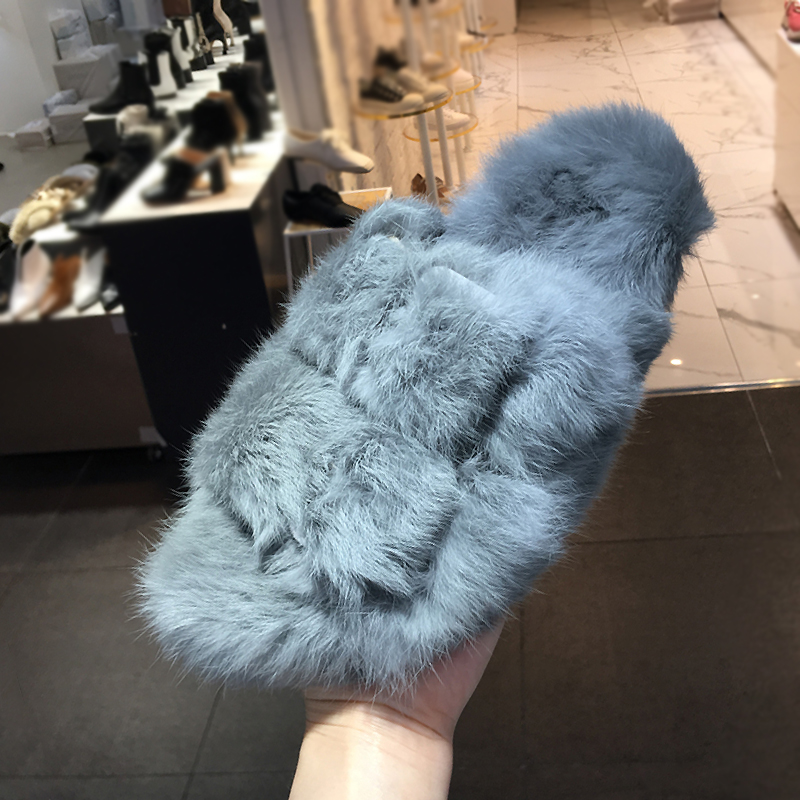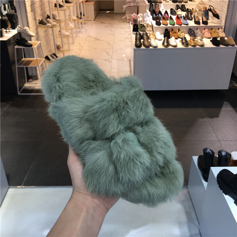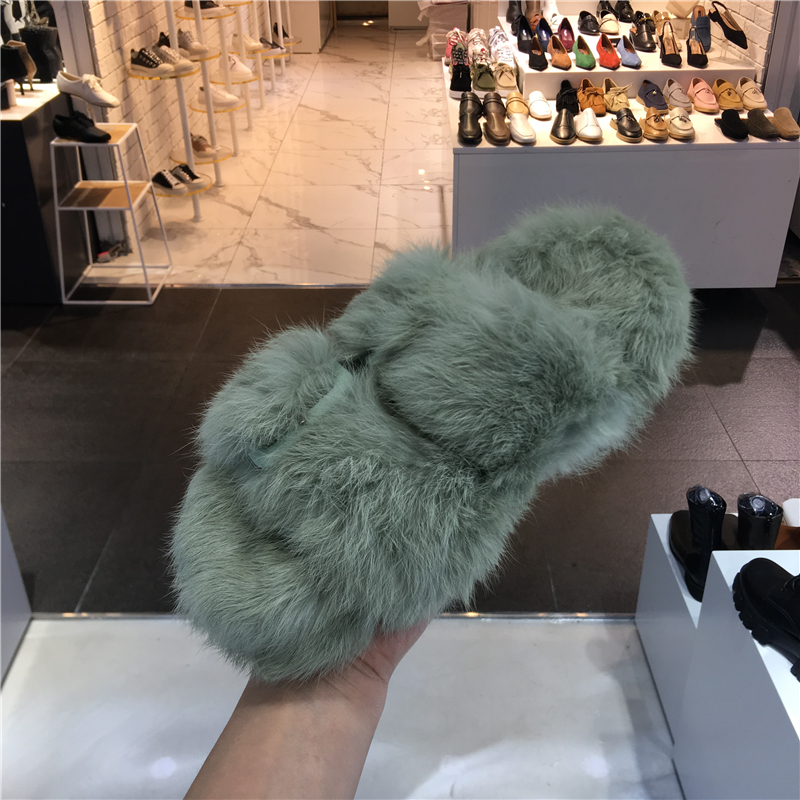 LUXE DESIGN DOUBLE BUCKLE FAUX FUR SLIDER SLIPPERS