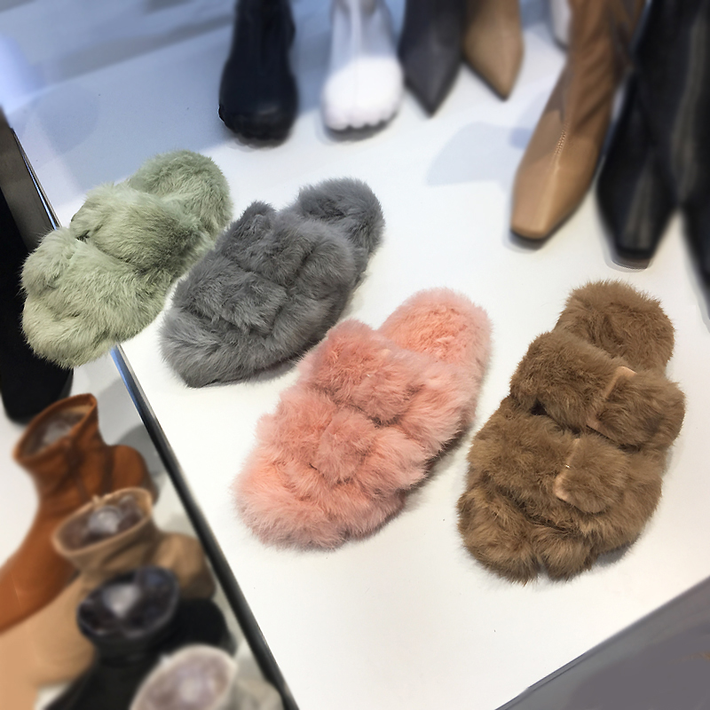 Slip-on style Open toe Super-soft, faux-fur upper Double buckle detail