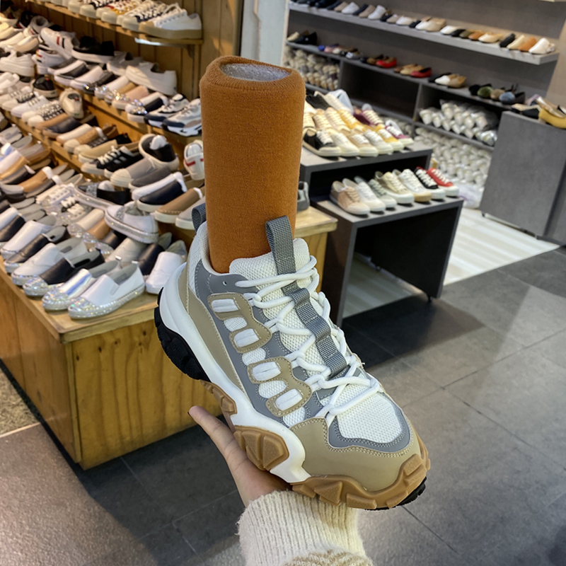 Lace-up fastening Sock-like cuff Chunky sole Contrast socks Comfy, sock-like fit