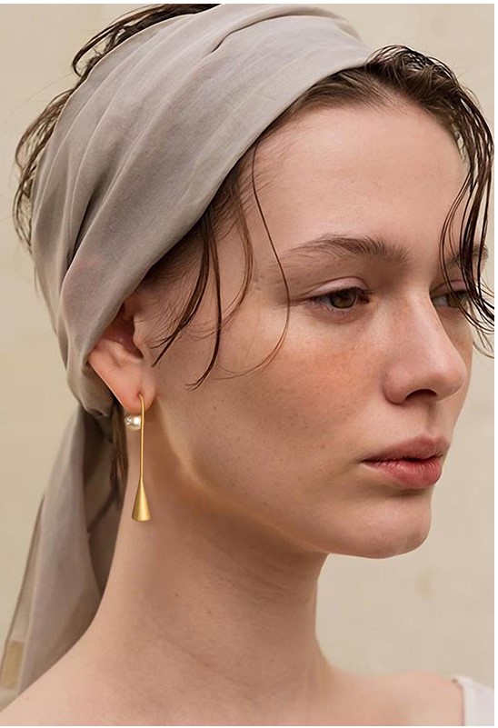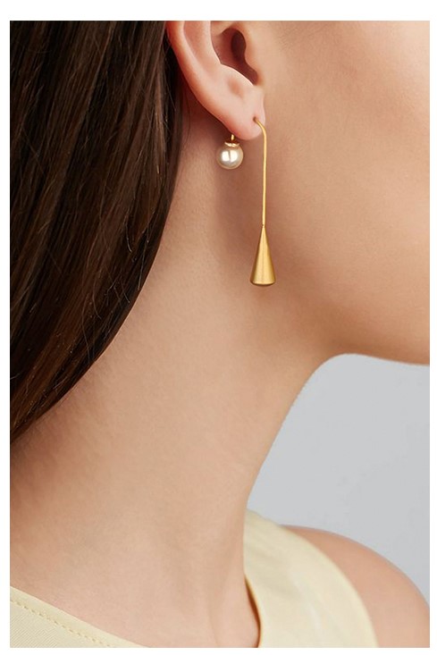 UZL DESIGN GOLD PLATE BELLY BAR EARRINGS WITH PEARLS