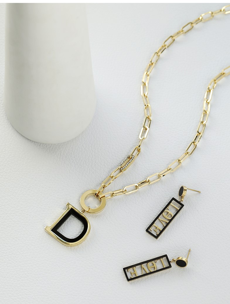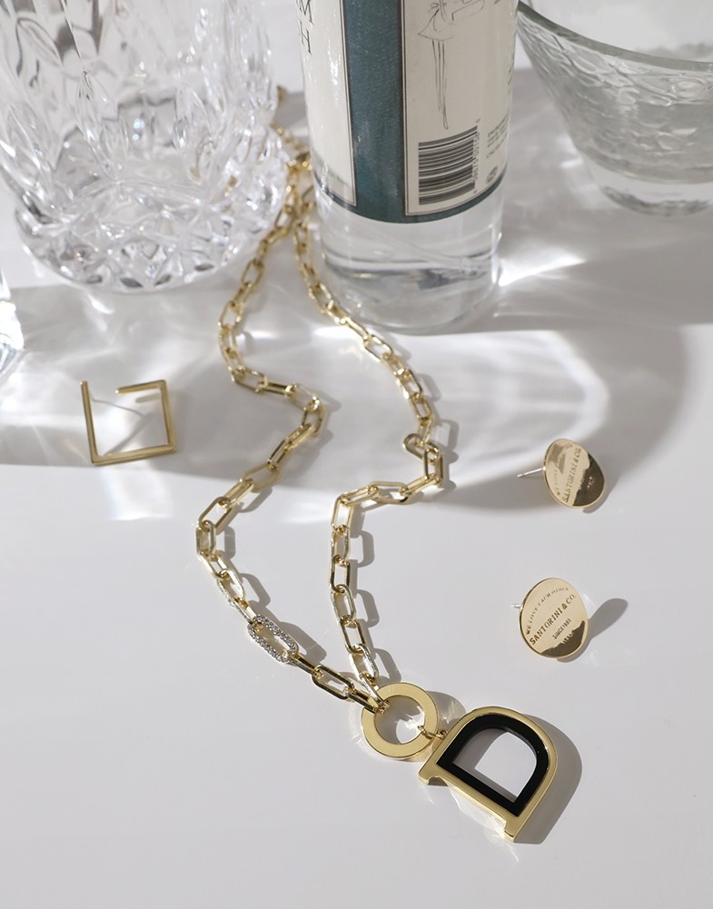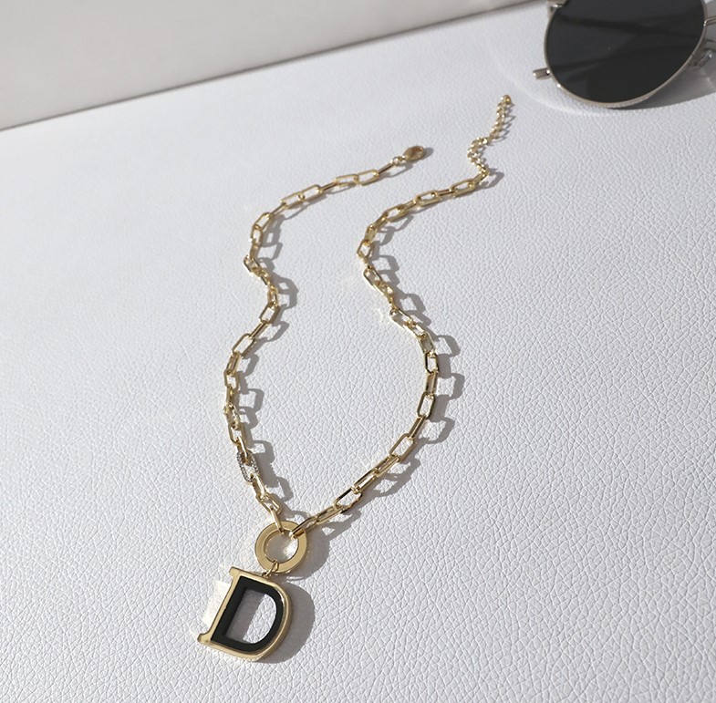 UZL DESIGN GOLD PLATED CHAIN LINK NECKLACE WITH LETTER D