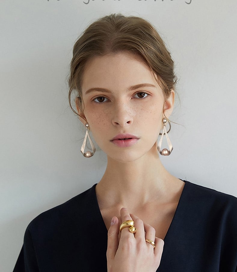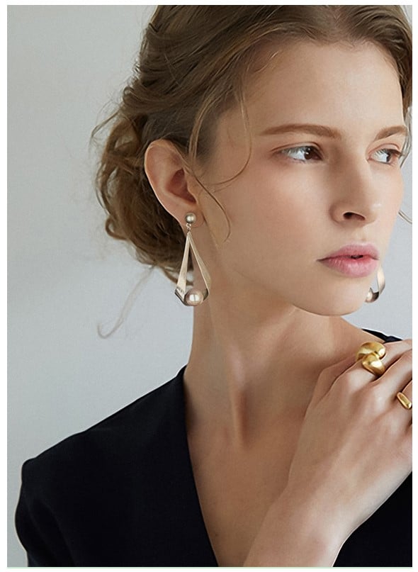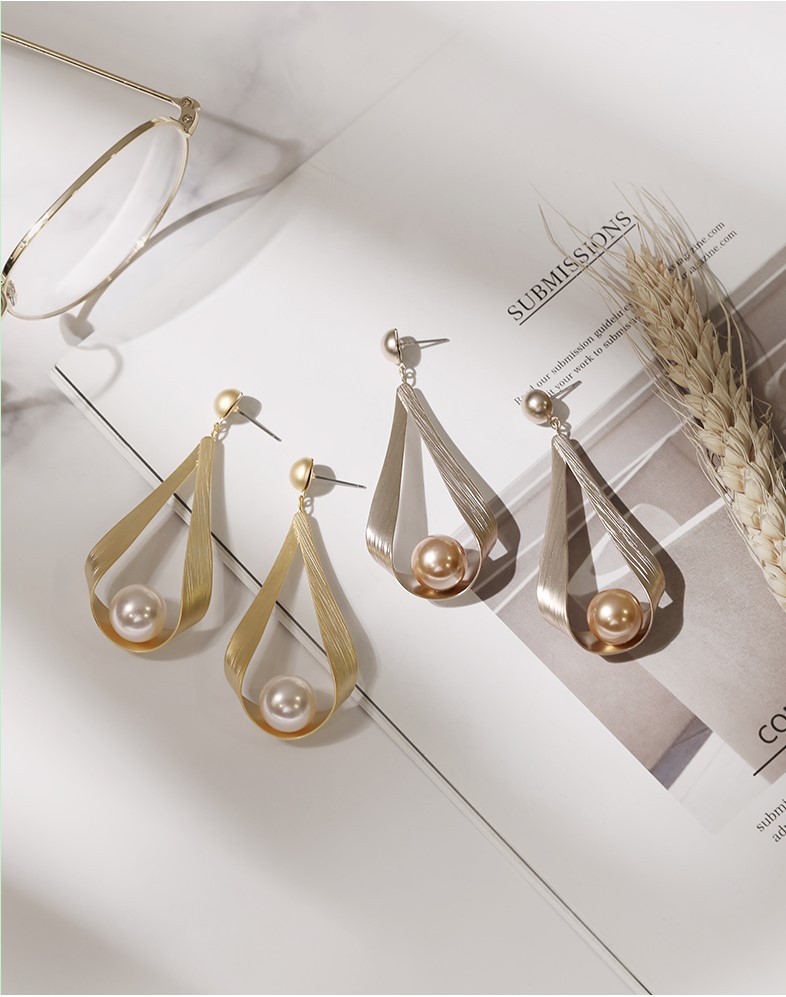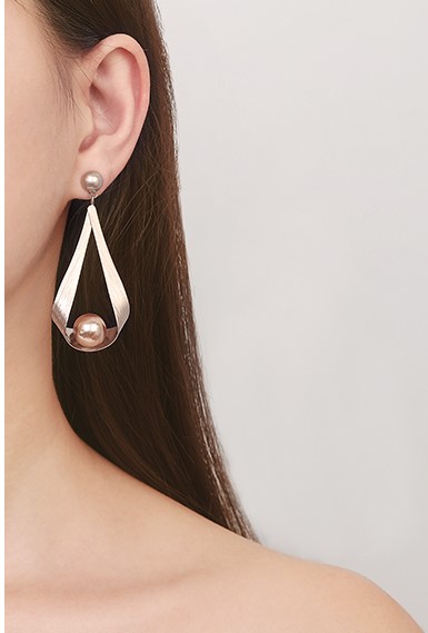 UZL DESIGN EARRINGS WITH STUD AND PEARL DROP CHARM IN GOLD PLATE