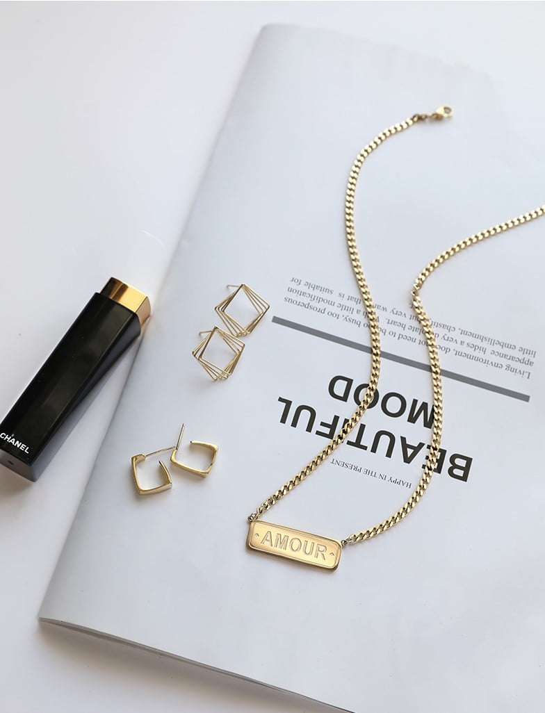 UZL DESIGN GOLD PLATE NECKLACE WITH AMOUR PENDANT