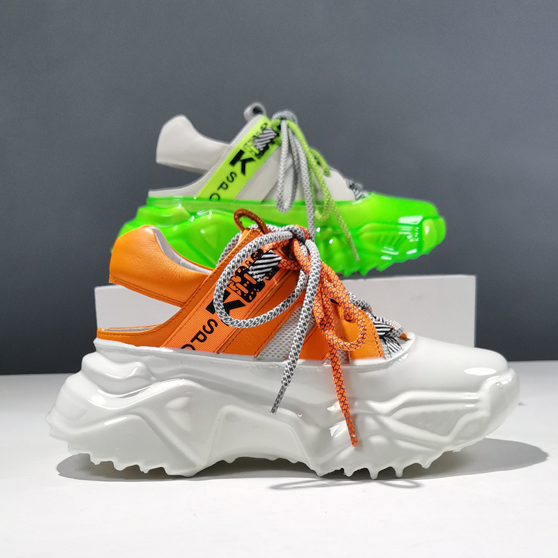 DELLY JELLY RETRO DESIGN CHUNKY SOLE PLATFORM LEATHER SANDALS