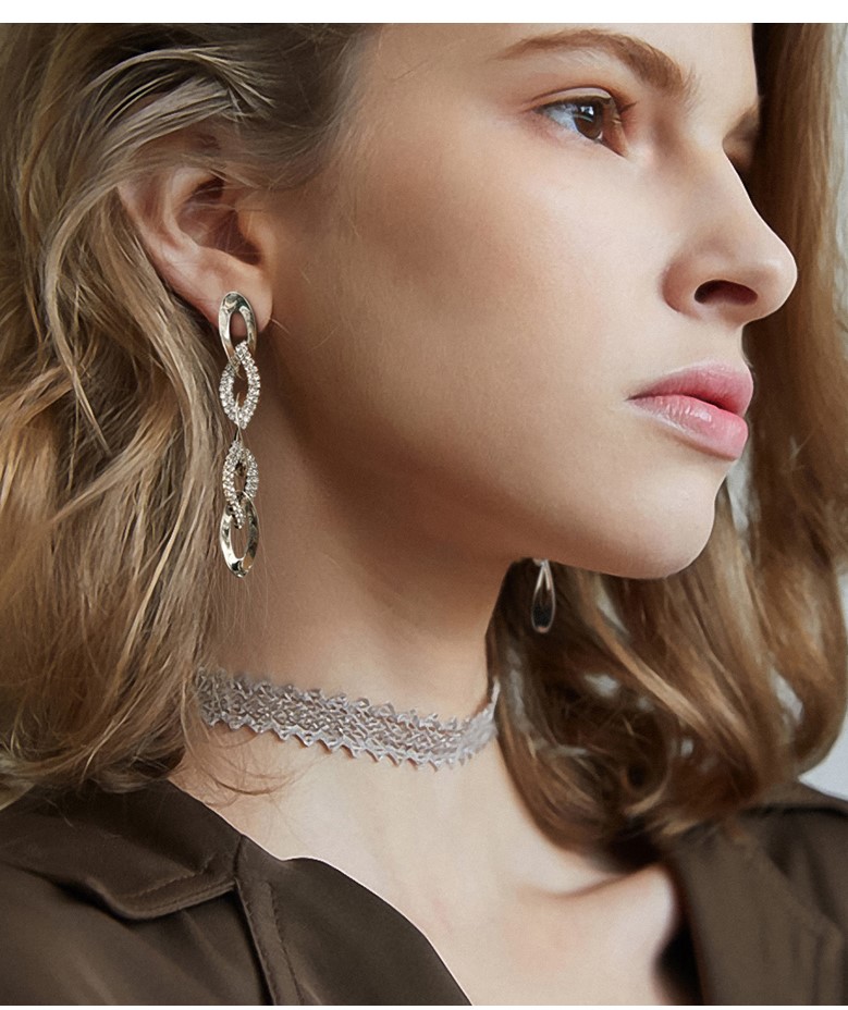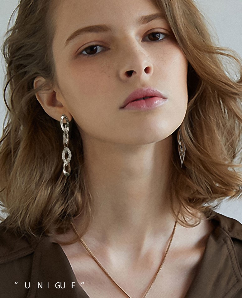Chunky chain design Drop style Crystal detail Bullet-clutch back Sterling silver back