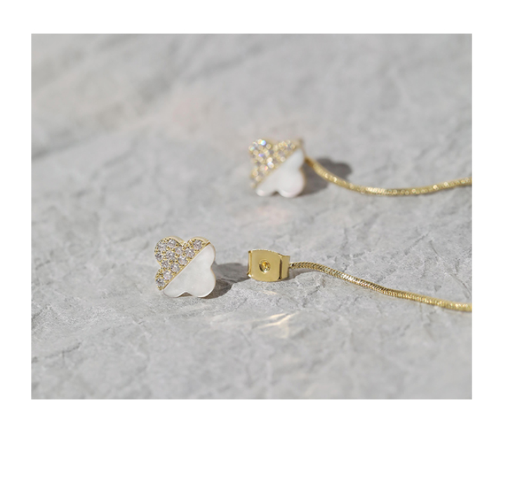 UZL DESIGN GOLD PLATED BACK CHAIN DROP EARRINGS WITH BALL DETAIL