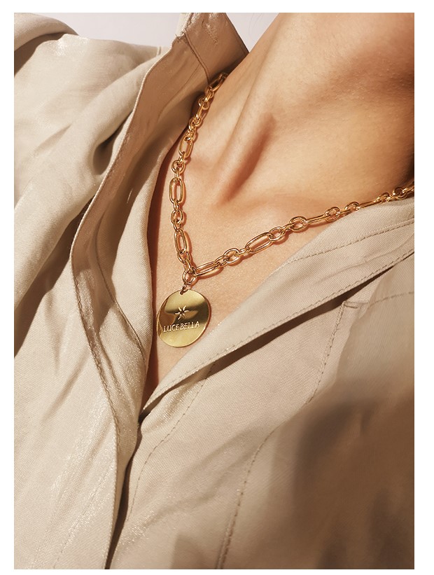 UZL DESIGN VINTAGE INSPIRED LUCE BELLA COIN PENDANT NECKLACE IN GOLD PLATED