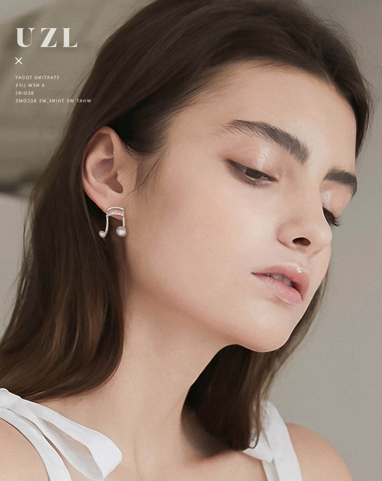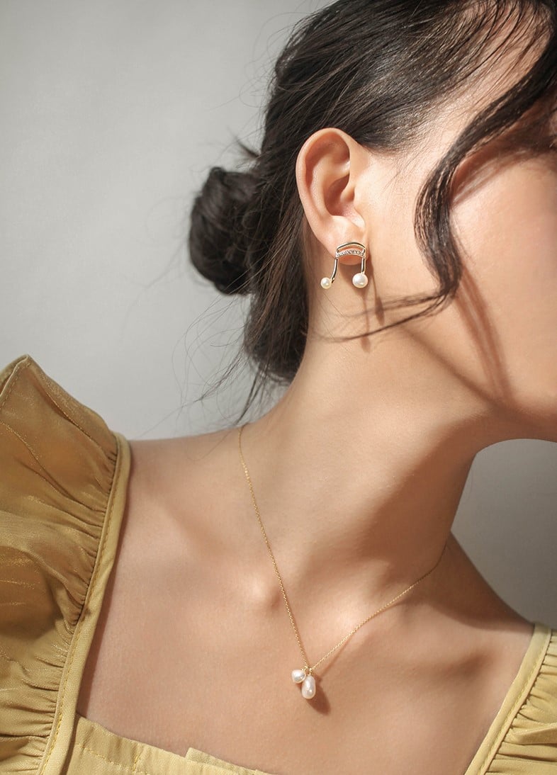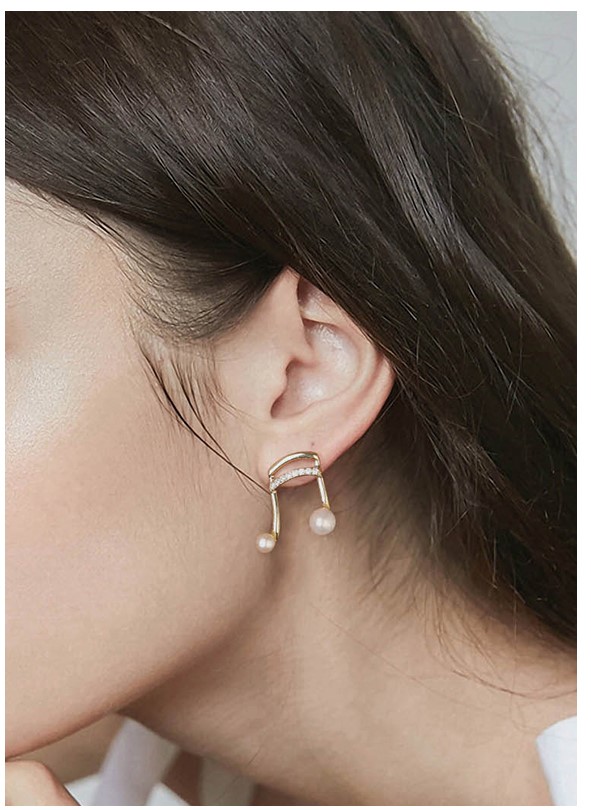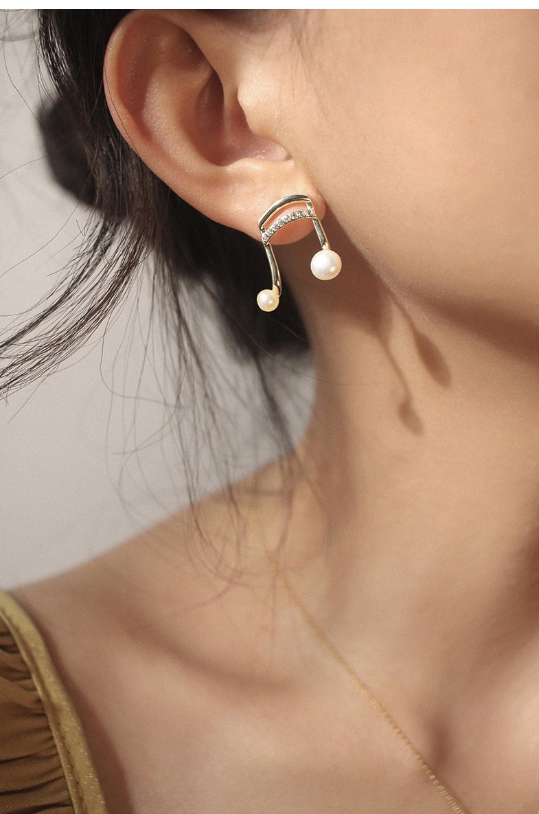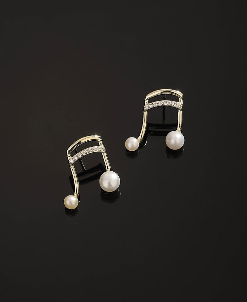 UZL DESIGN GOLD PLATED MUSIC ICON STUD EARRINGS WITH CRYSTAL AND PEARLS