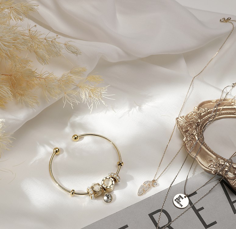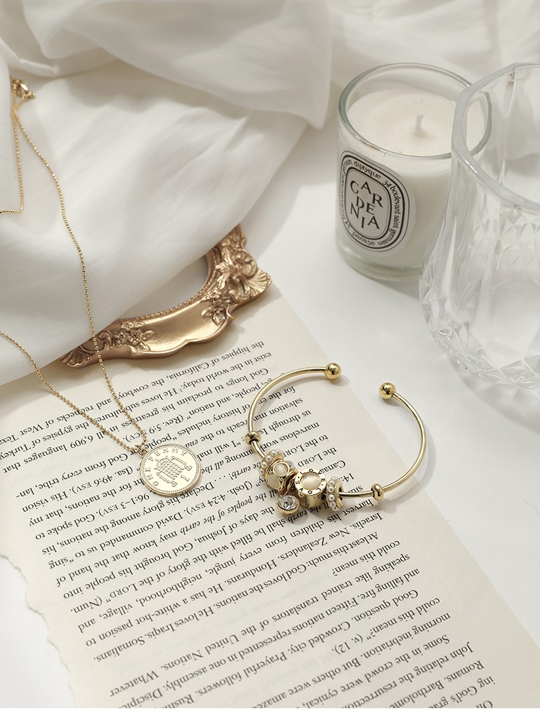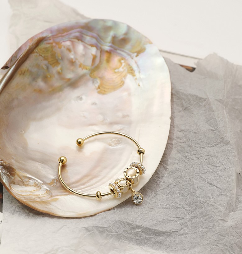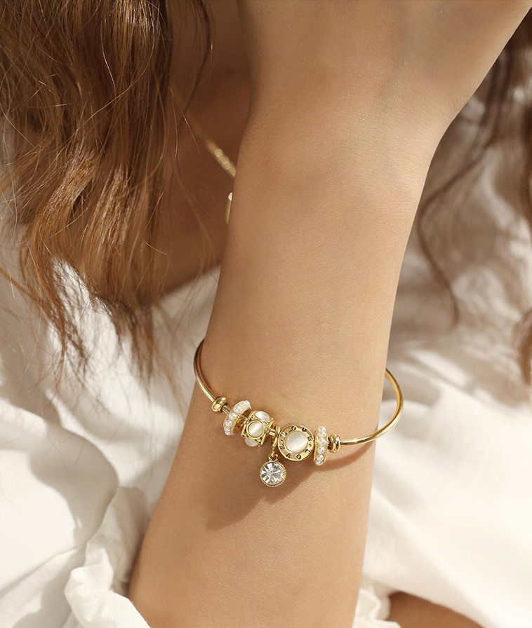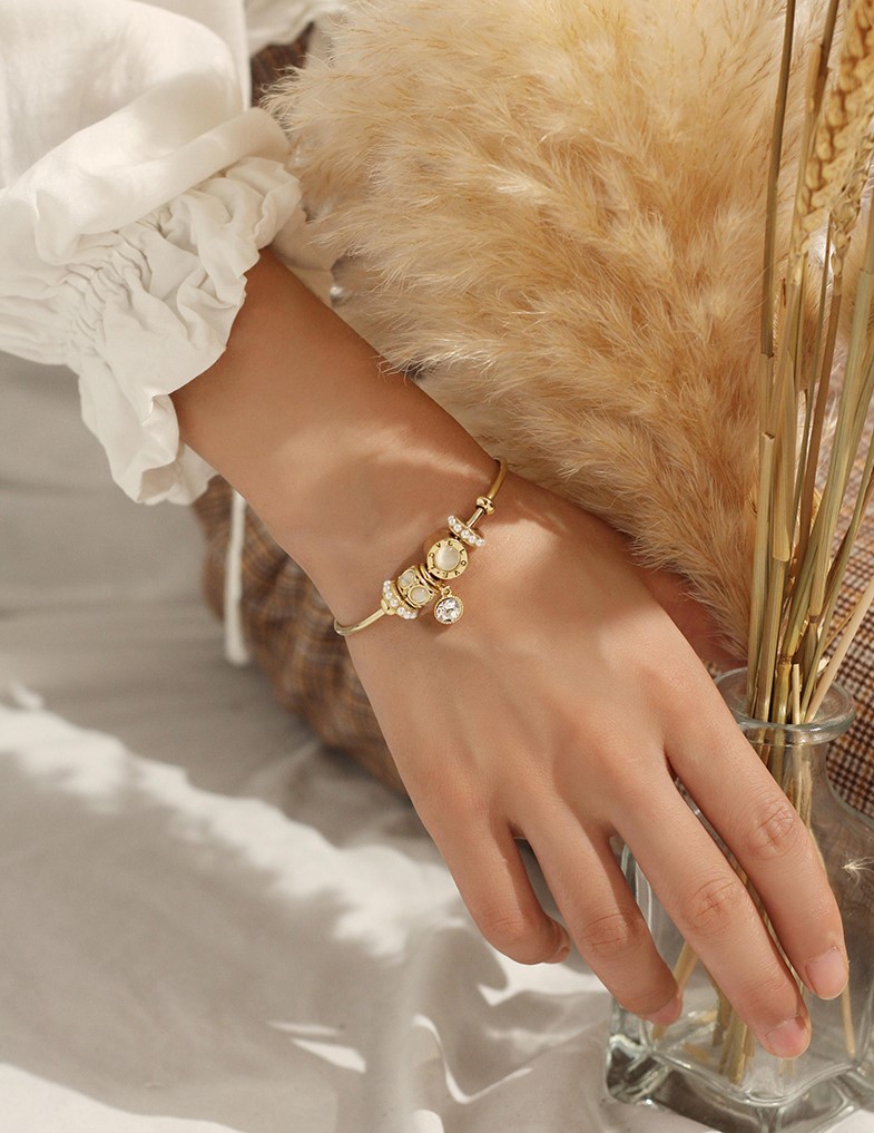 UZL DESIGN MULTI CHARM CUFF BRACELET IN GOLD PLATED