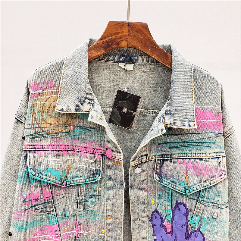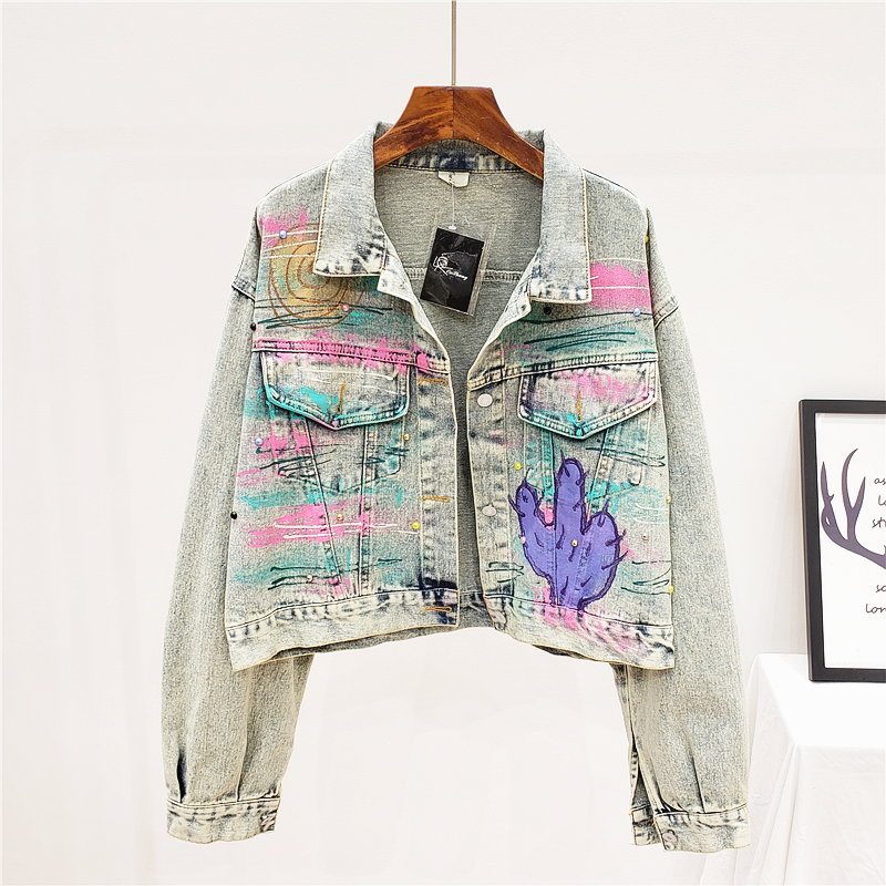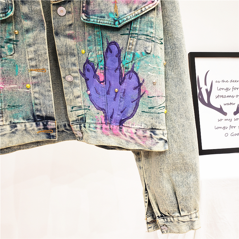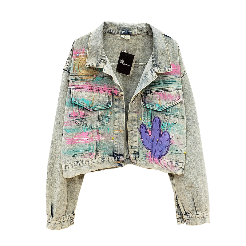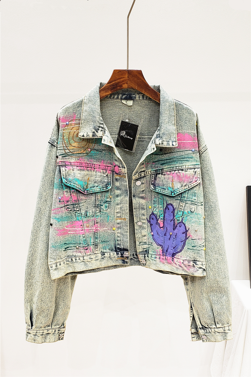 ALEYA NOIR HAND PAINTED GRAFFITI ALPHABET DENIM JEAN WOMEN JACKET