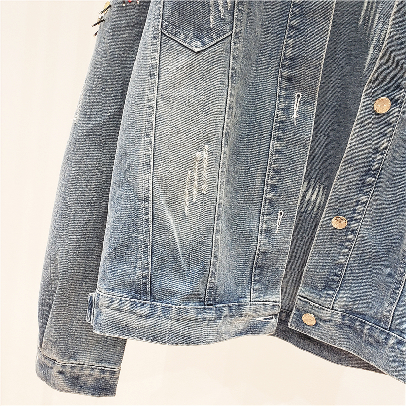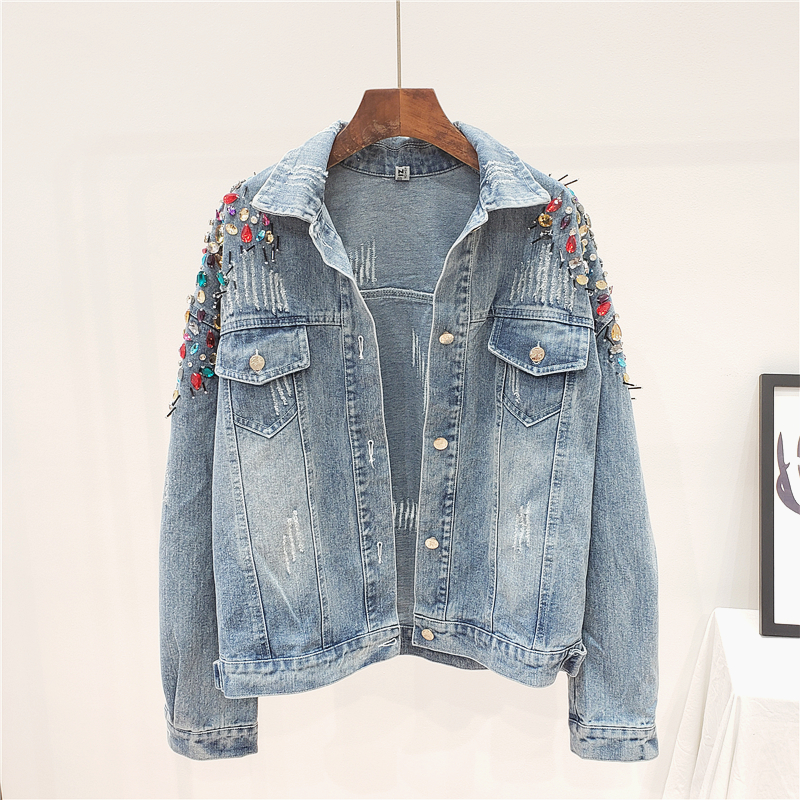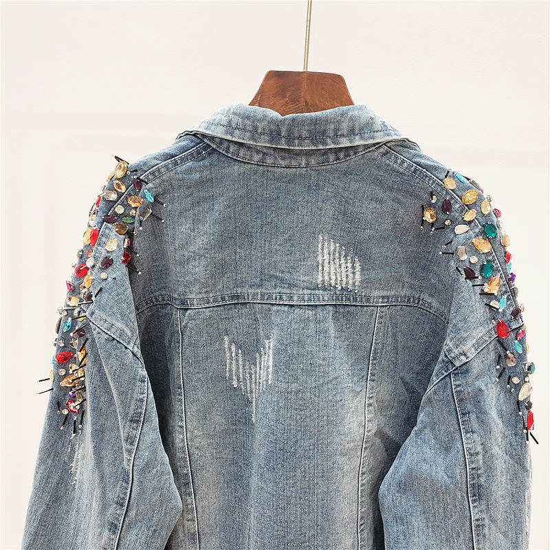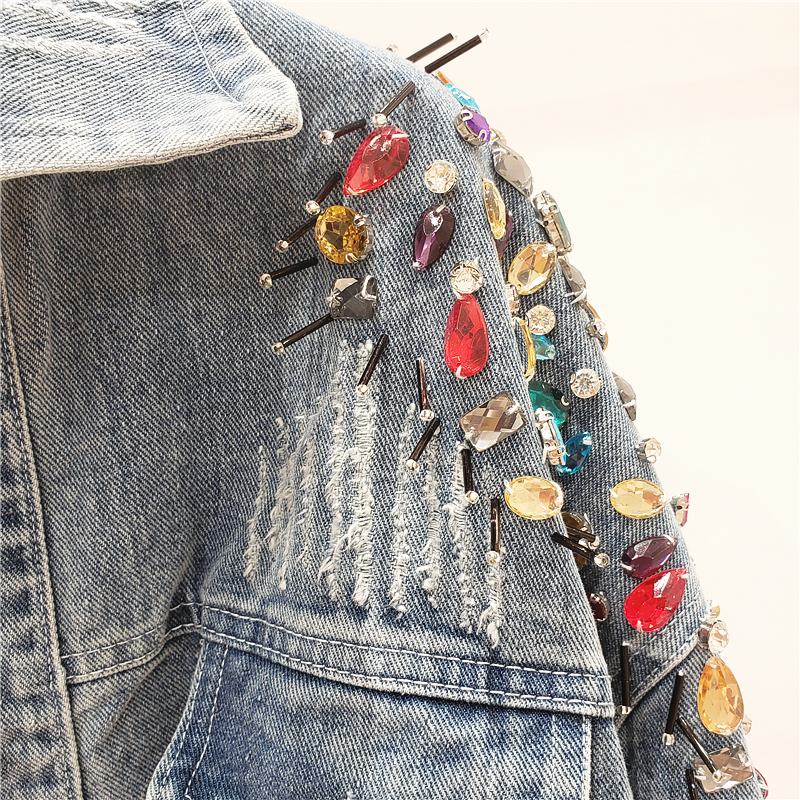 HANKO ROCZA HANDMADE OLD WASHED DENIM JEAN WOMEN JACKET WITH GEMSTONE BEADED