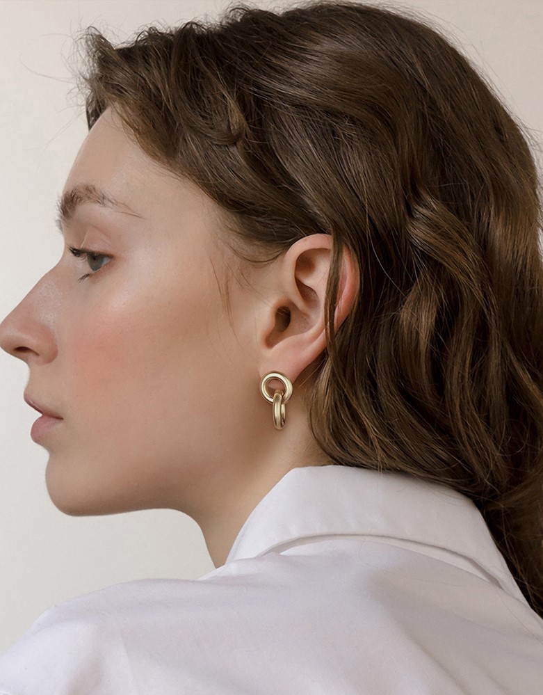 UZL DESIGN DOUBLE HOOP EARRINGS IN GOLD PLATED