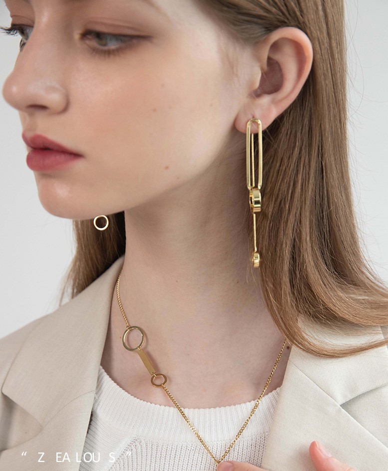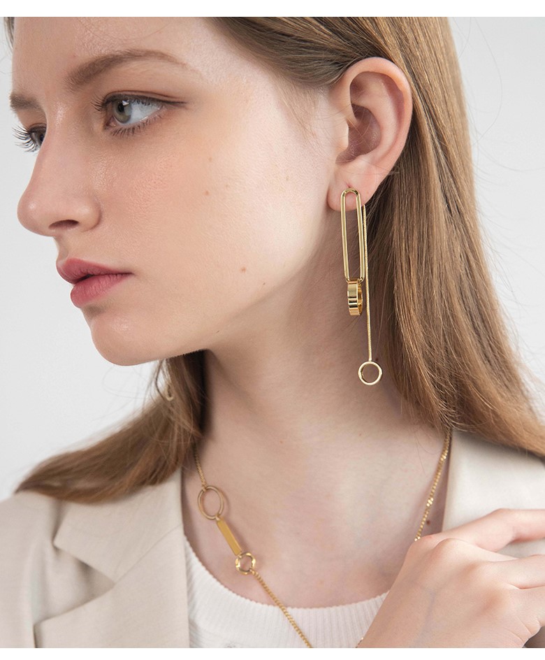 UZL DESIGN MINIMAL BAR AND HOOP DROP EARRINGS IN GOLD PLATED