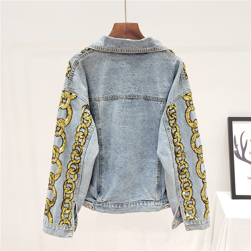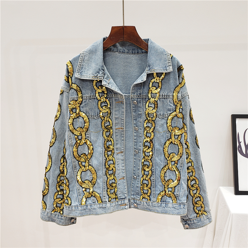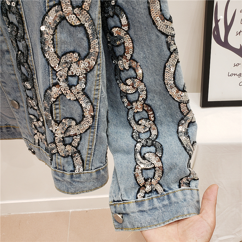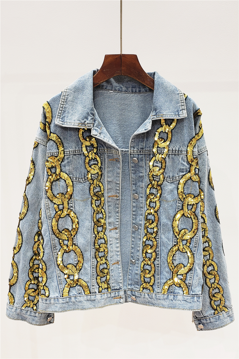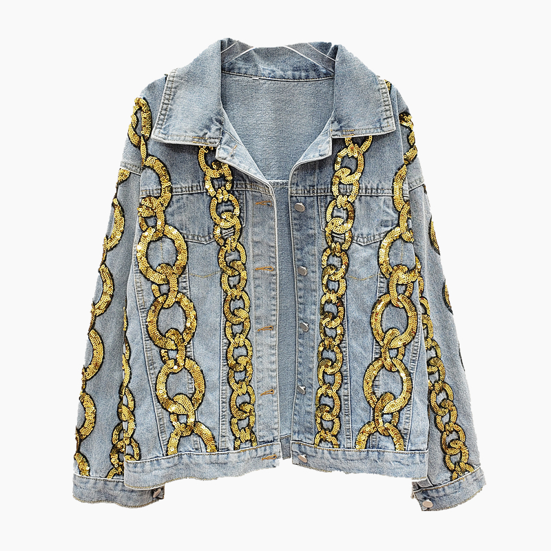 GIANA TRUANCY STRIPED SEQUIN IMITATION CHAIN DENIM JEAN WOMEN JACKET