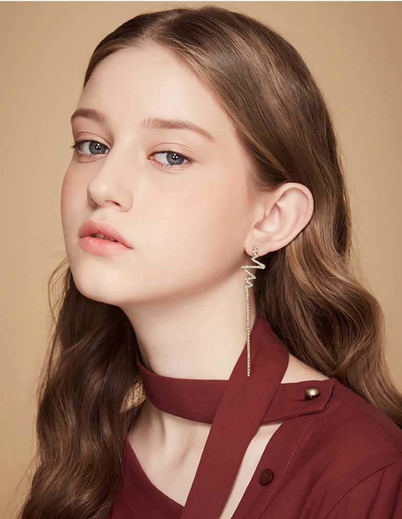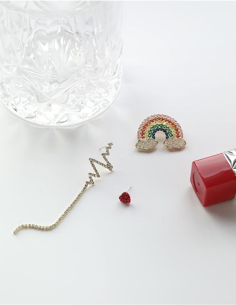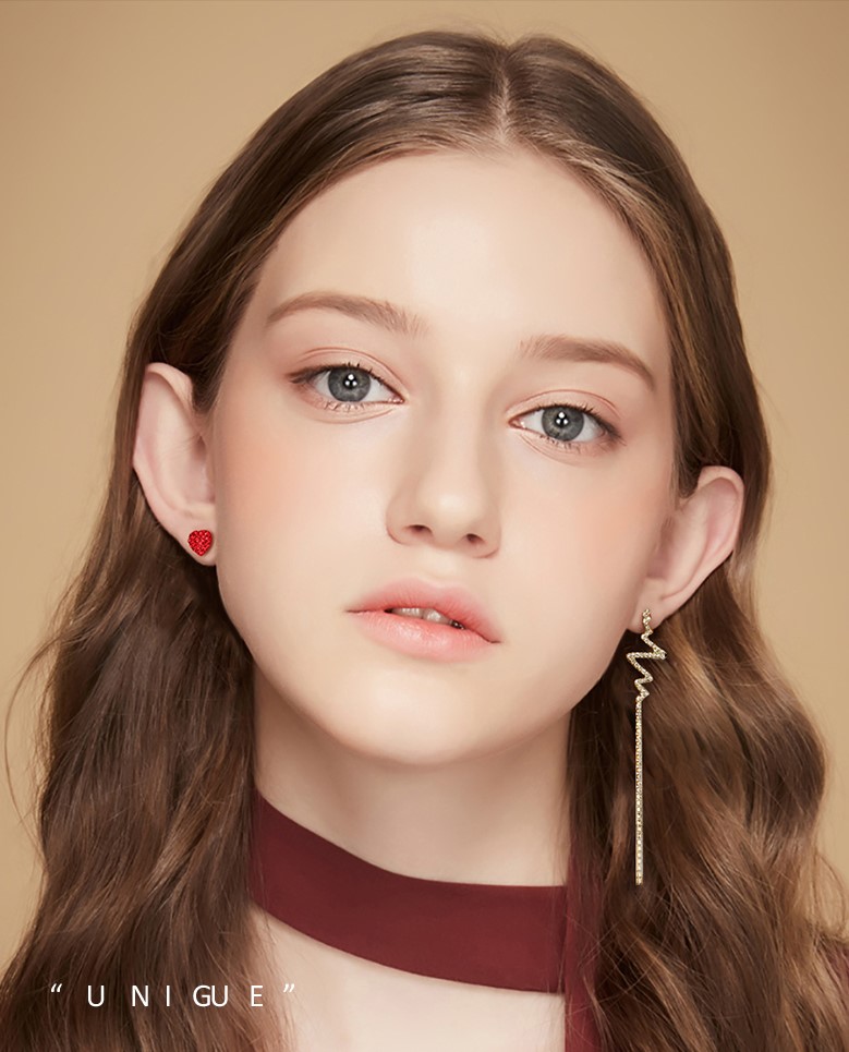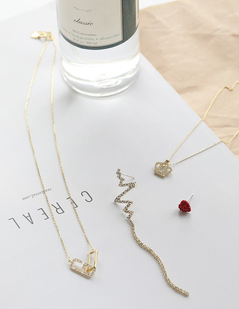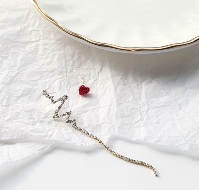 UZL DESIGN SINGLE STUD HEART WITH DIAMOND DROP IN GOLD PLATED