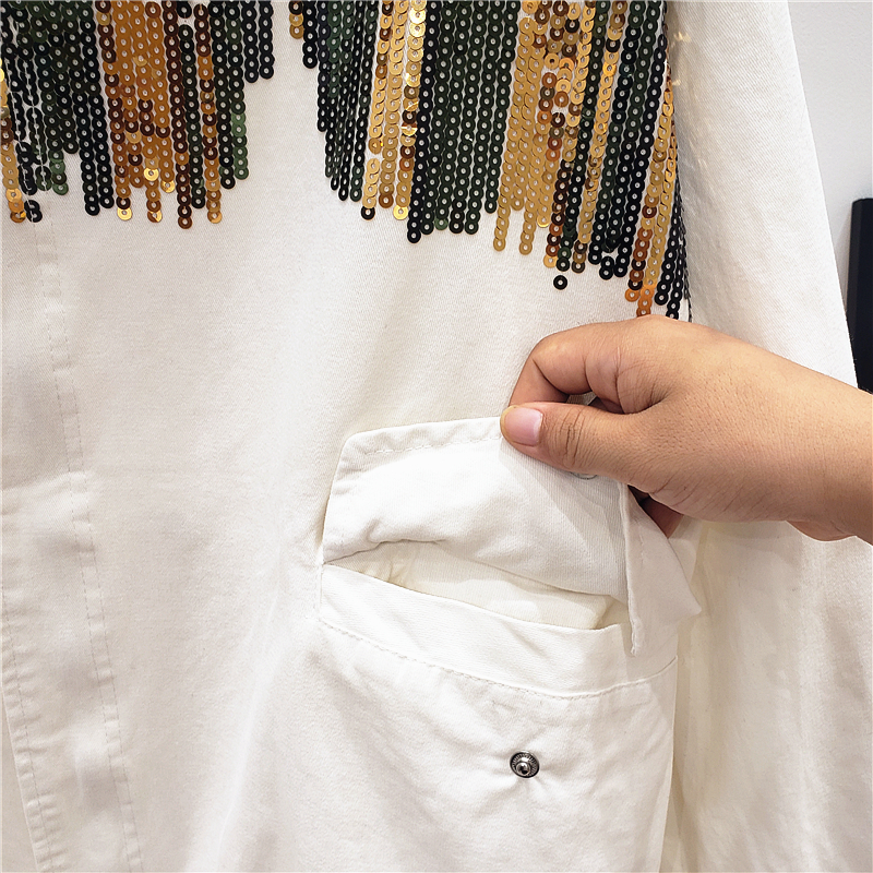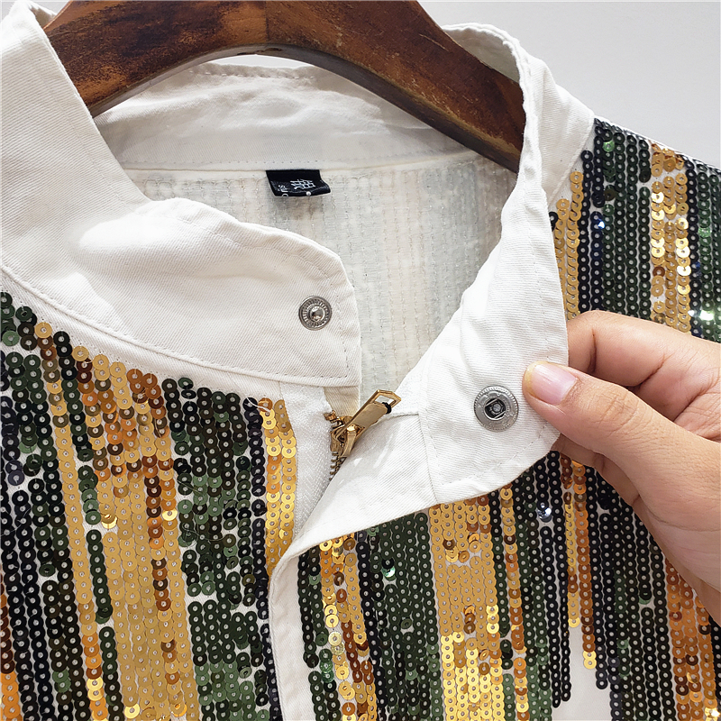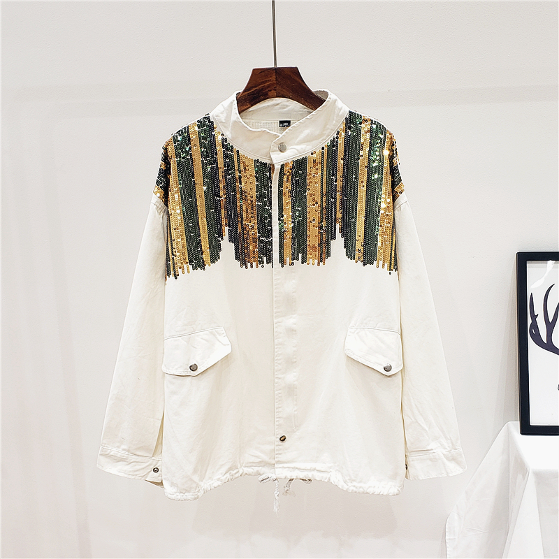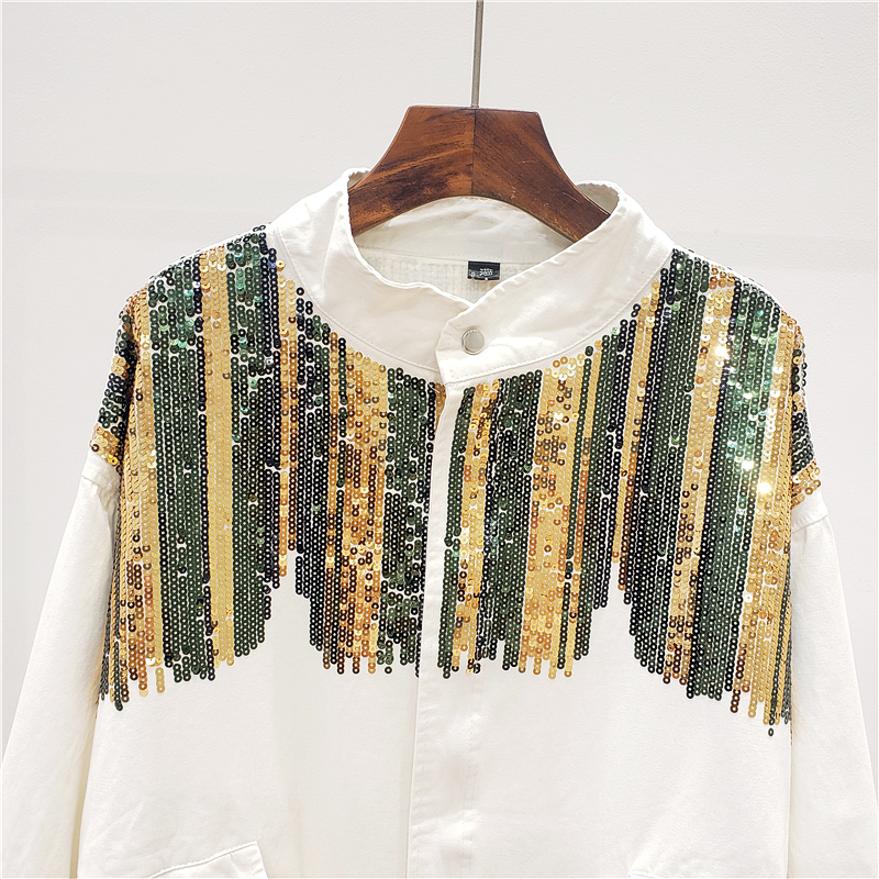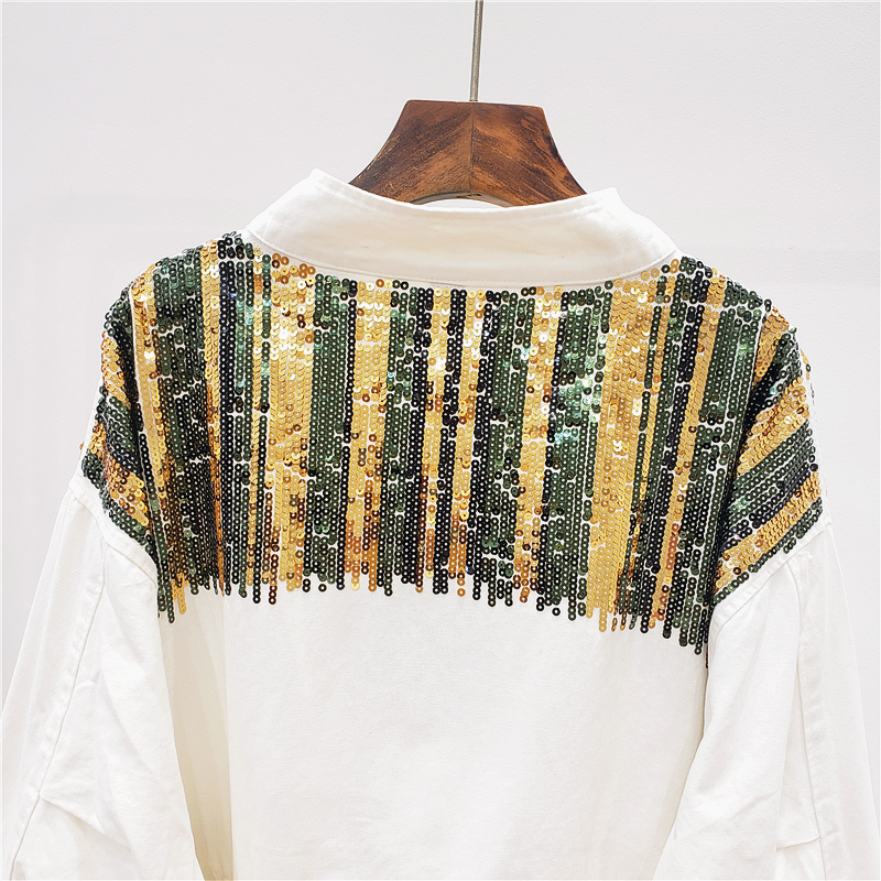 GIAJIA CAMO SEQUINS HANDMADE EMBROIDERED DENIM JEAN JACKET