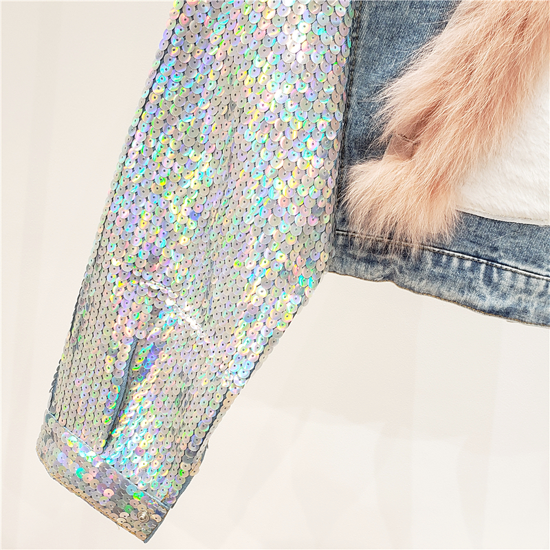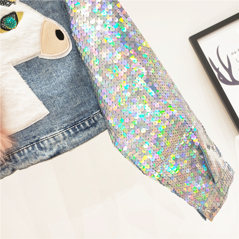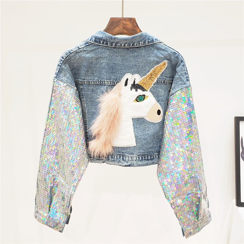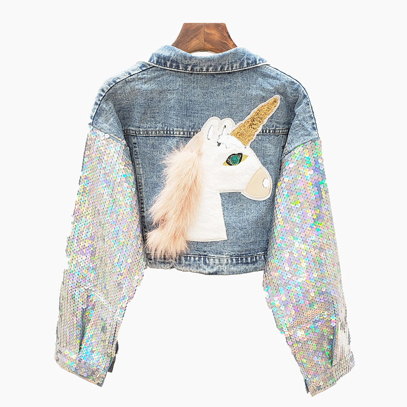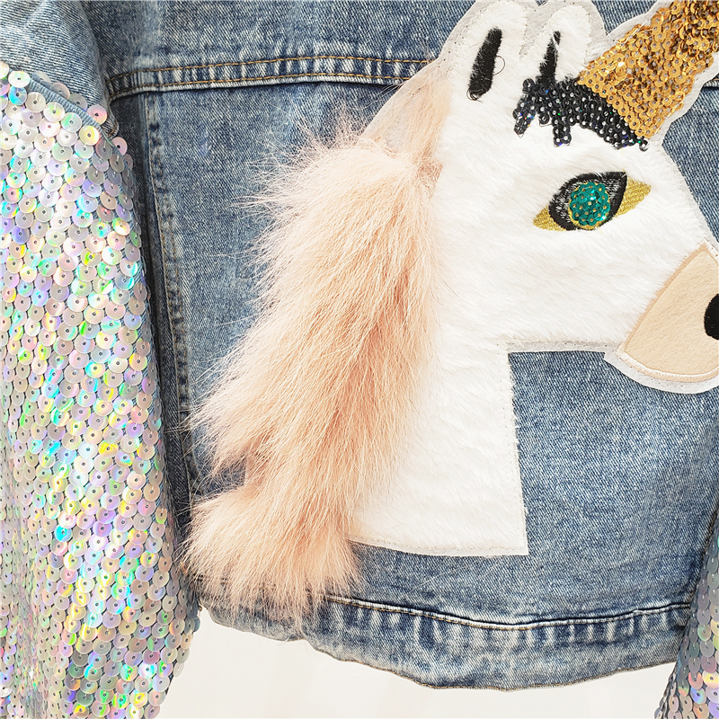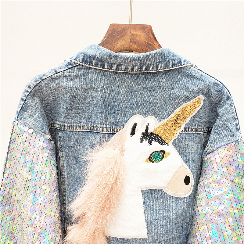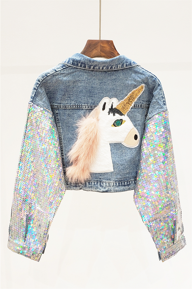 HORZA KIMMO HANDMADE UNICORN SEQUIN BAT SLEEVE OLD DENIM JACKET