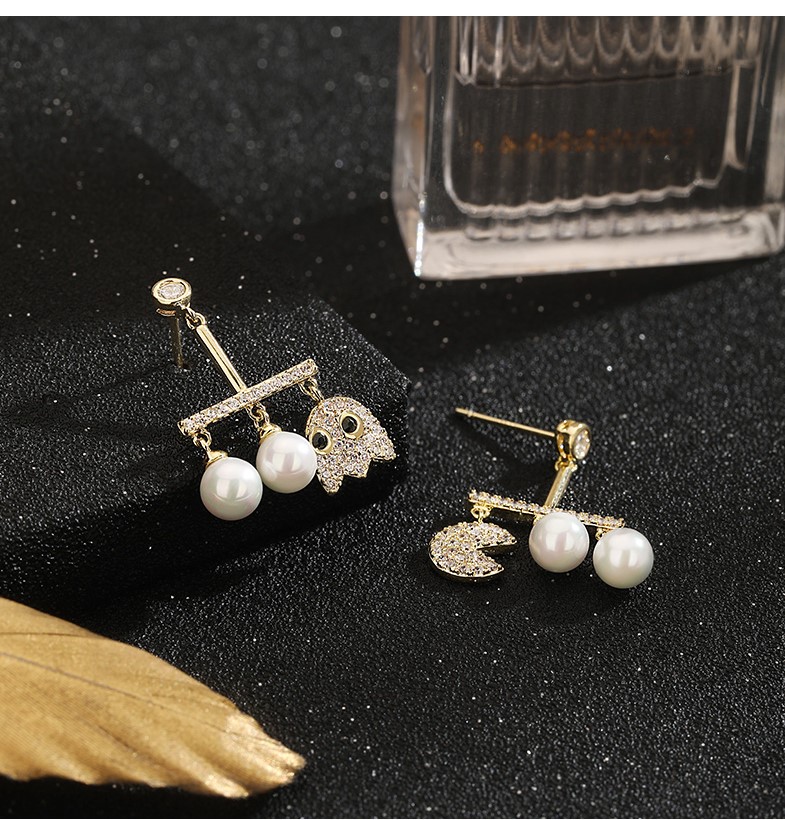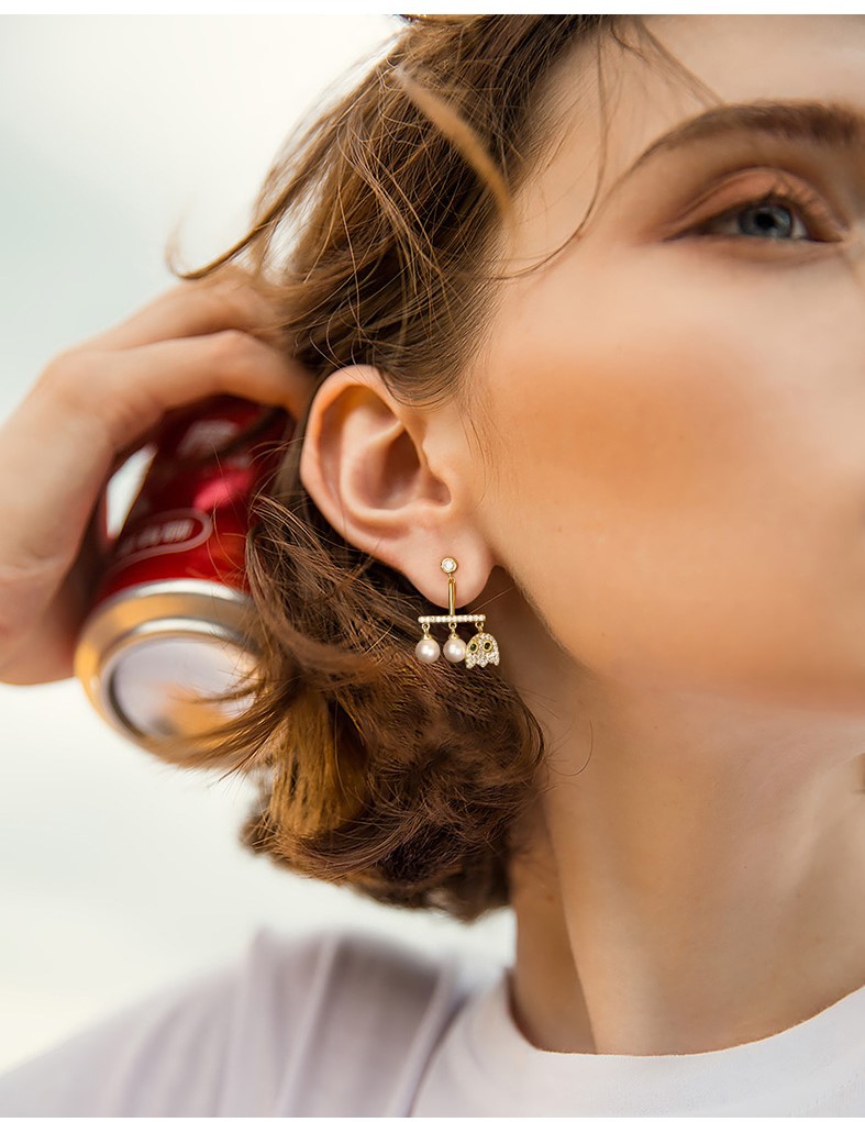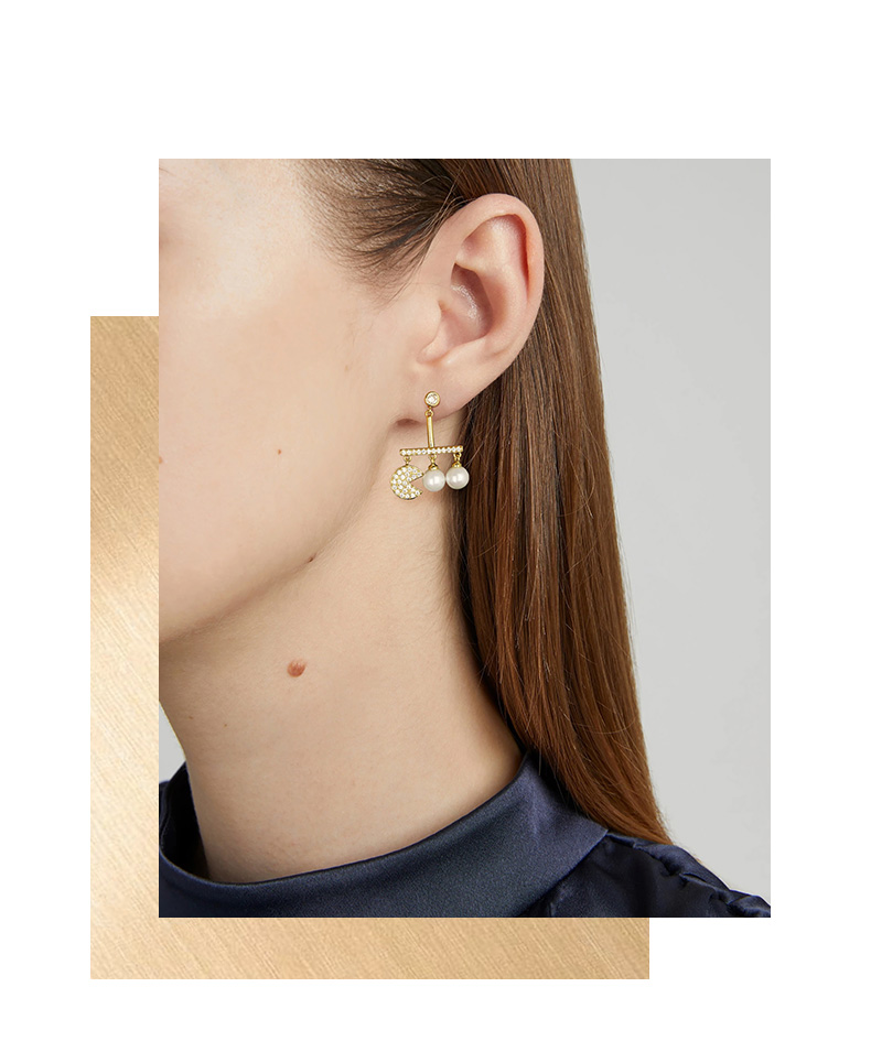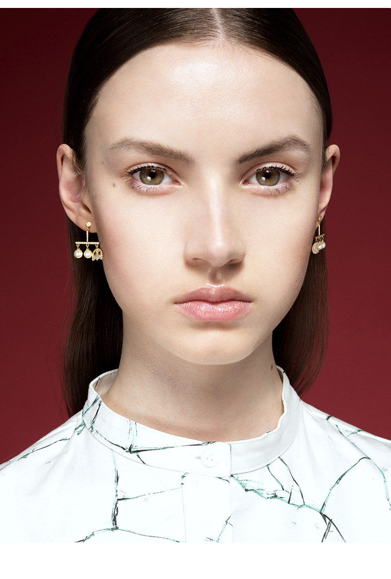 UZL DESIGN EARRINGS WITH CRYSTAL AND PEARL DETAIL