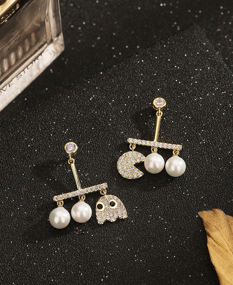 Gold plated Crystal pearl design Sterling silver back