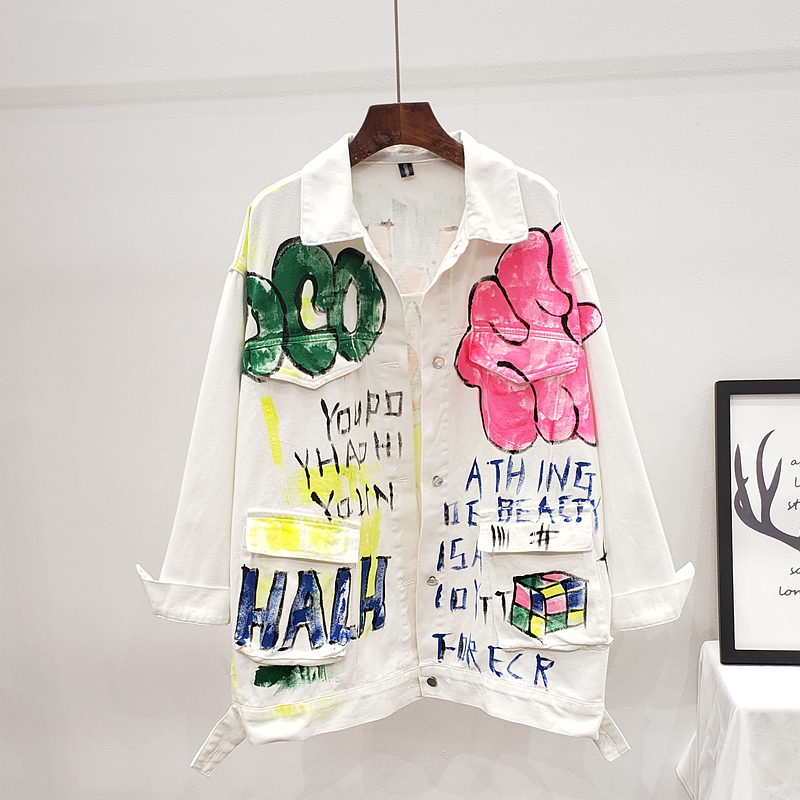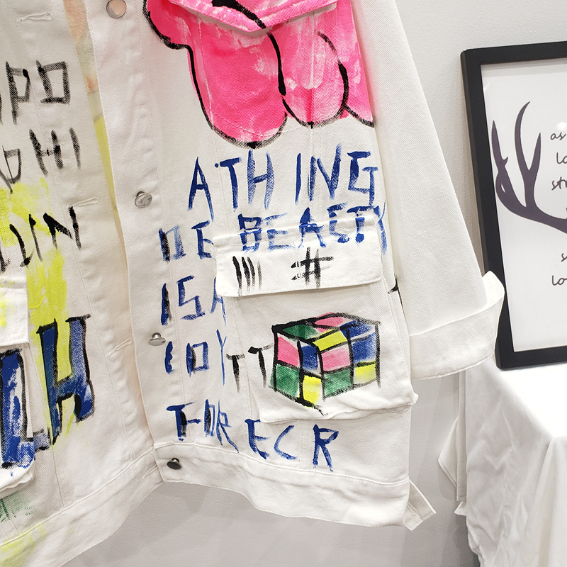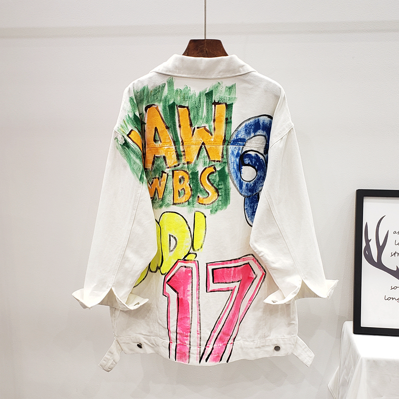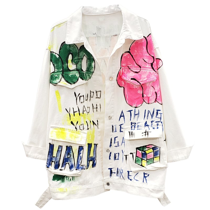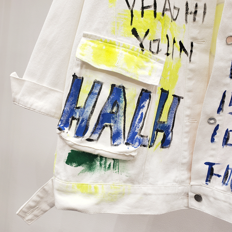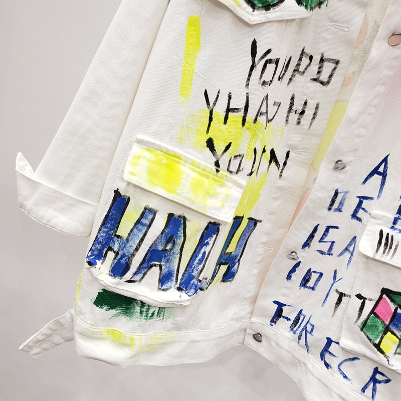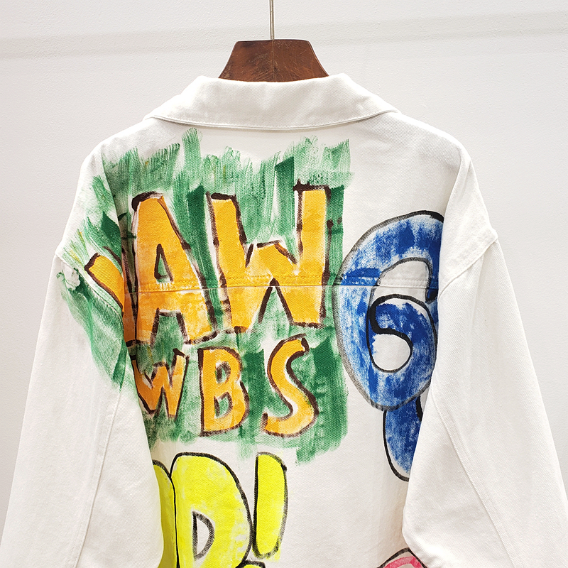 CANTO HENZA HANDMADE GRAFFITI HAND PAINTED DENIM JEAN JACKET IN WHITE