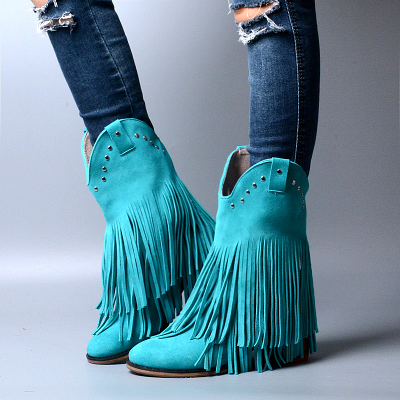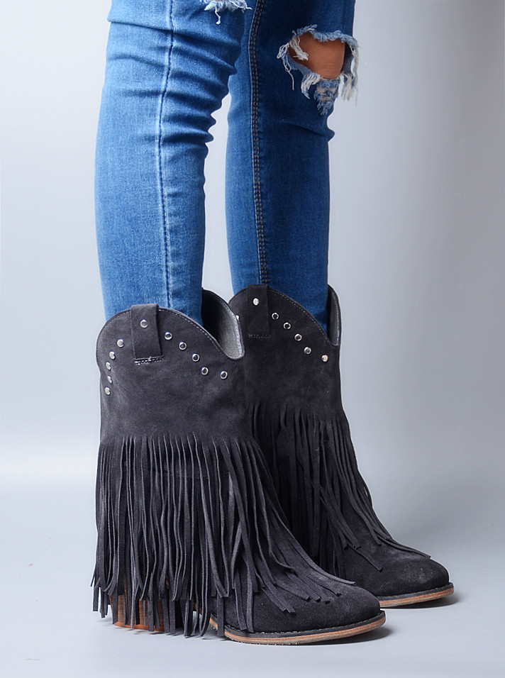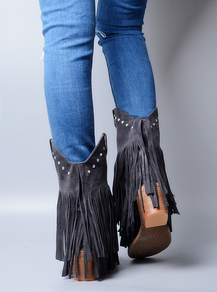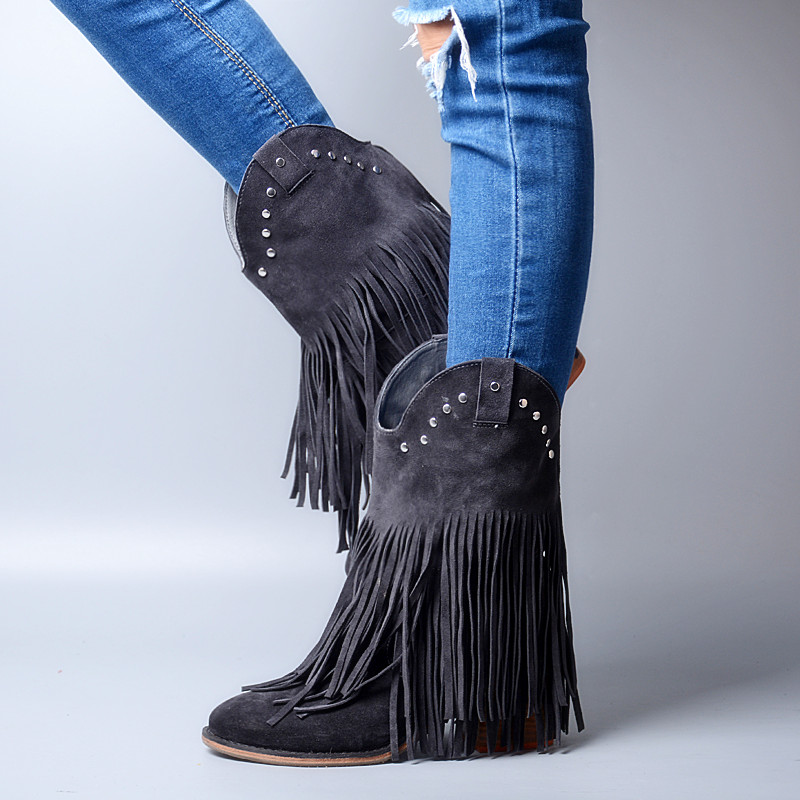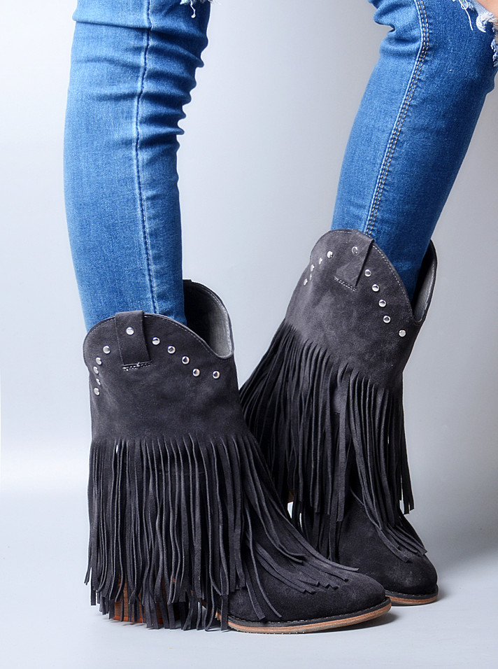 PROVA PERFETTO HANDMADE THICK HEELED ROUND TOE BOOTS WITH TASSEL