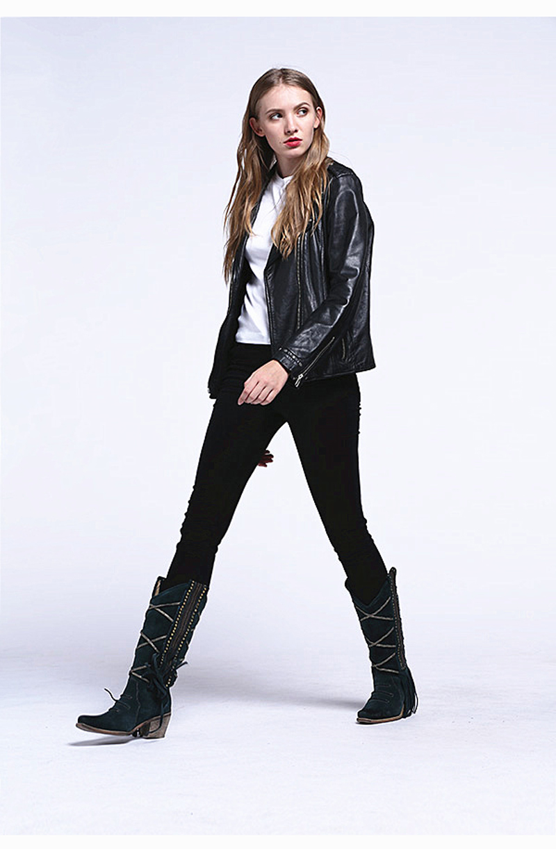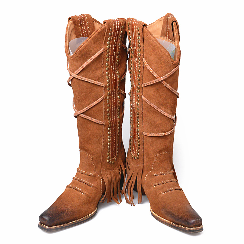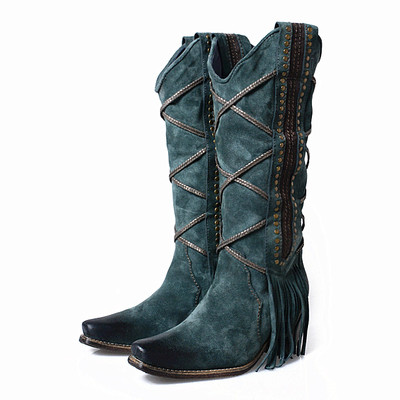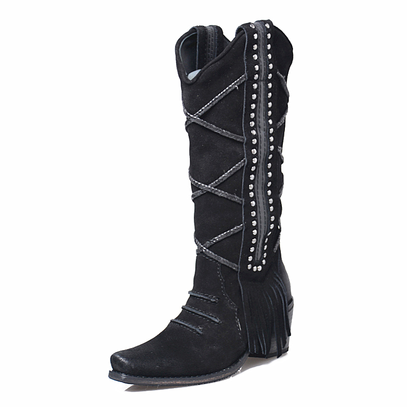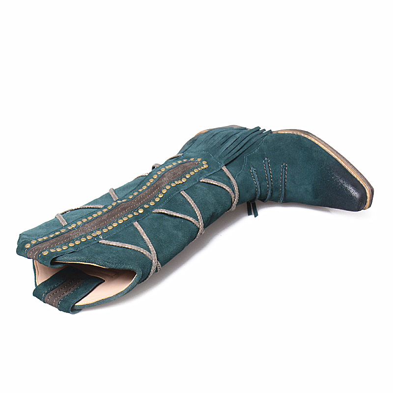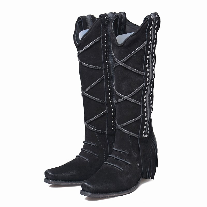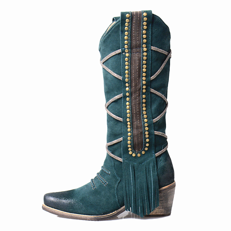 PROVA PERFETTO BOOP MID HEELED VELVET WESTERN LEATHER COWGIRL BOOTS WITH TASSEL