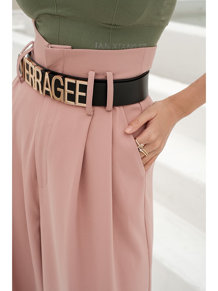 VERRAGE HIGH WAIST WIDE LEG TROUSERS IN PINK