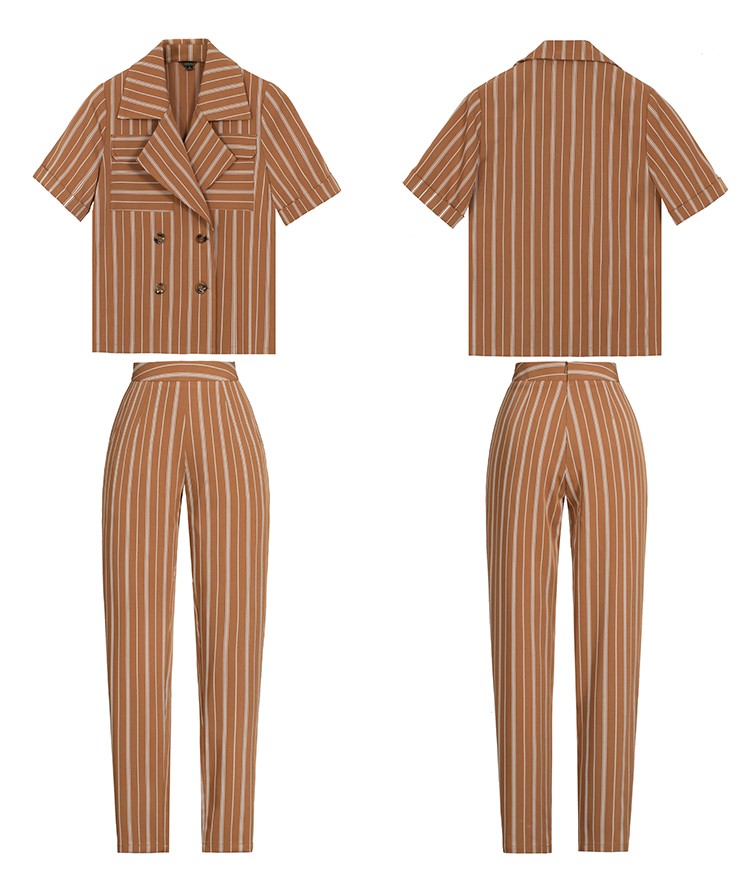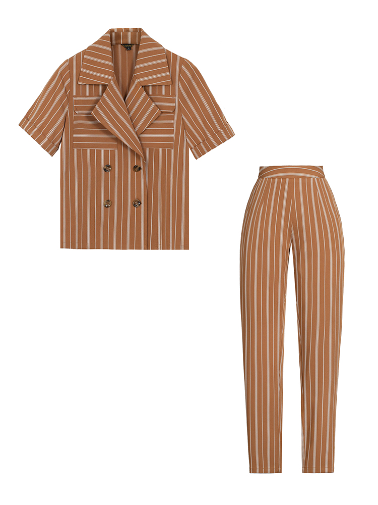 VERRAGE SHORT SLEEVE BLAZER AND MATCHING TROUSERS IN VINTAGE STRIPE