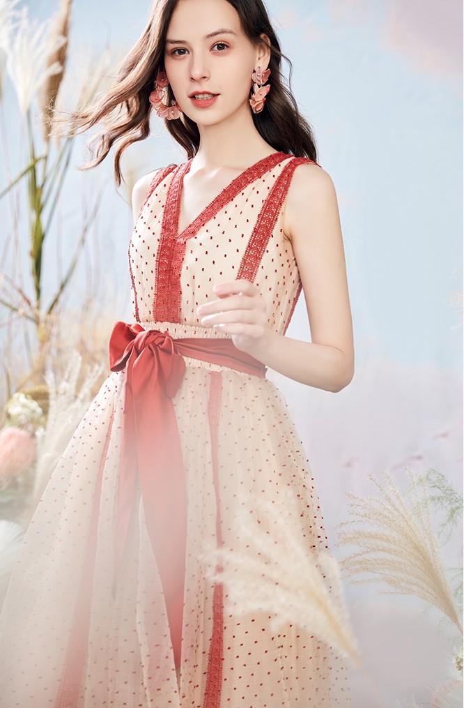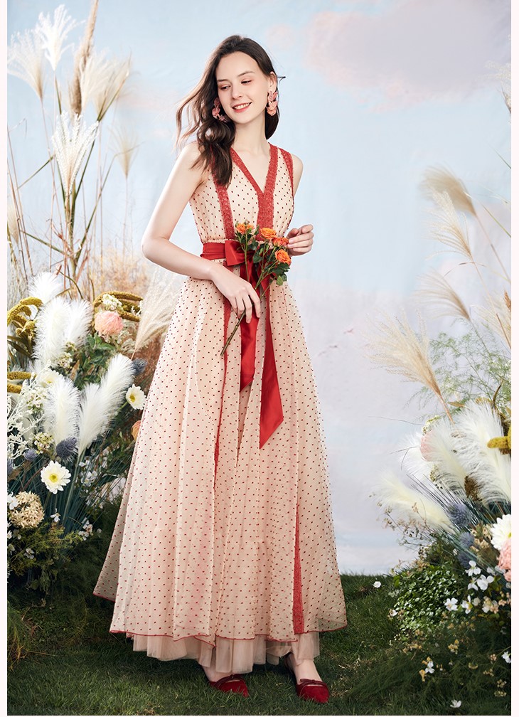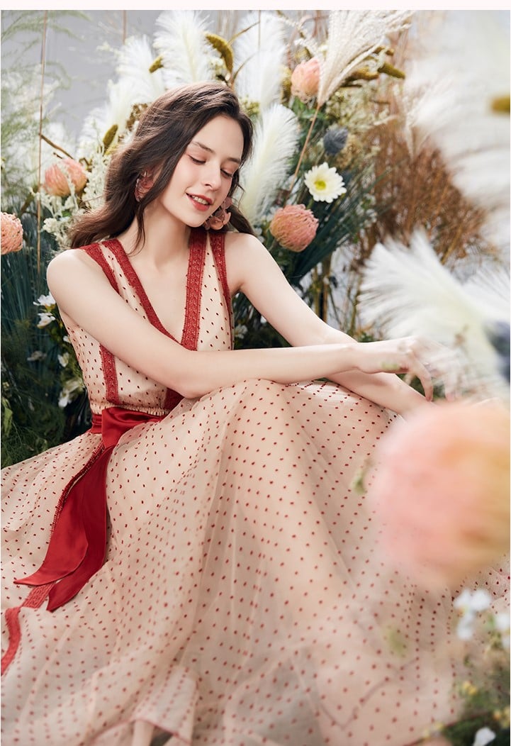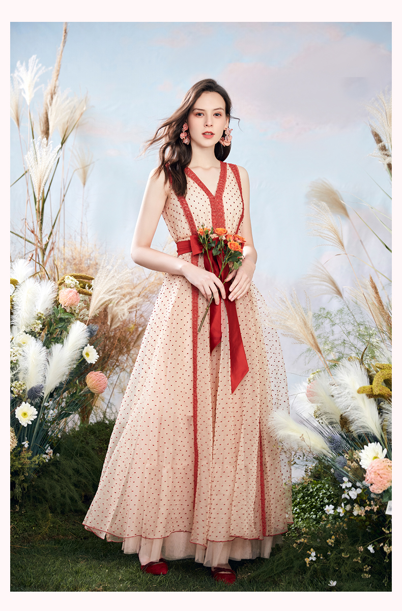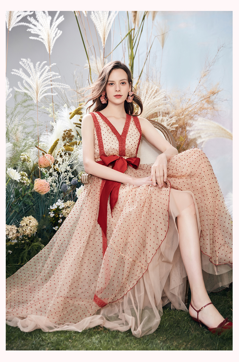 ARTKA DESIGN SPOT PRINT TULLE MAXI DRESS WITH CONTRAST LACE PLEATED