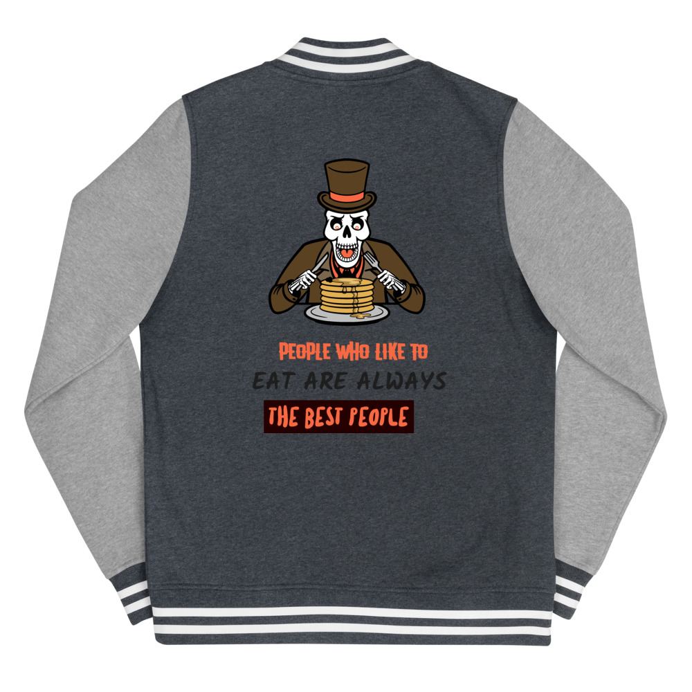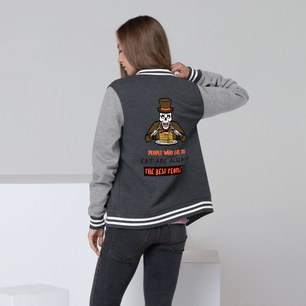 PEOPLE WHO LIKE TO EAT HUMOUR DESIGN LETTERMEN JACKET