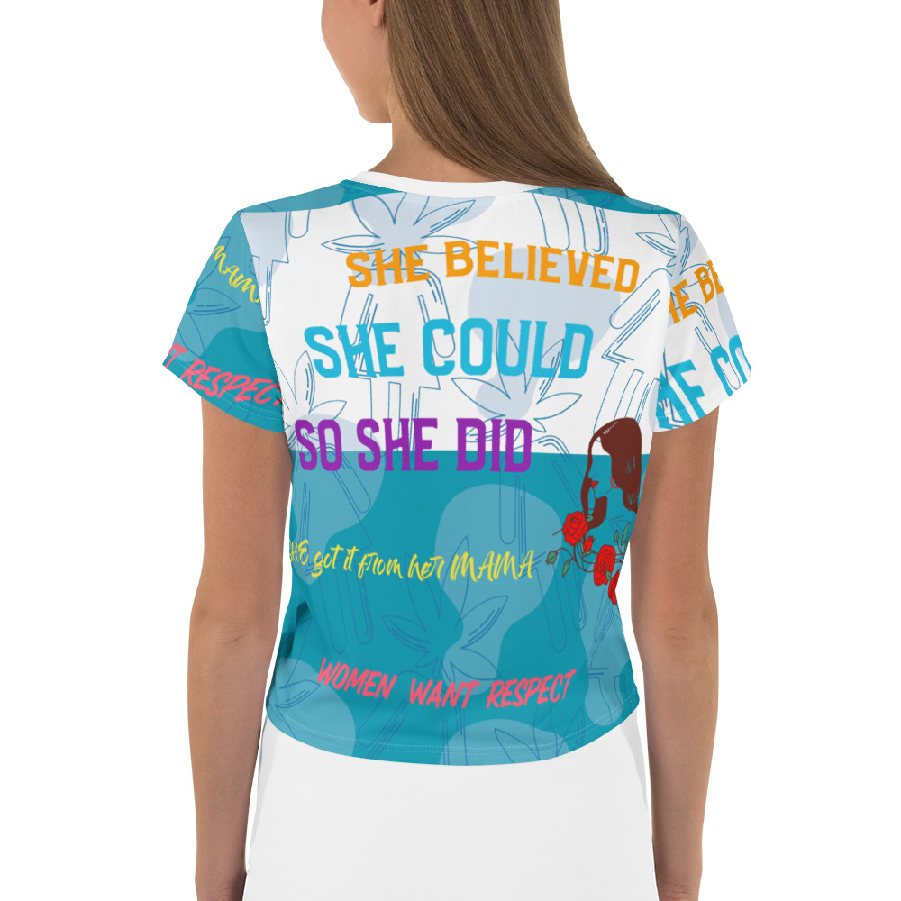 WOMEN WANT RESPECT ALL OVER PRINT CROP TEE