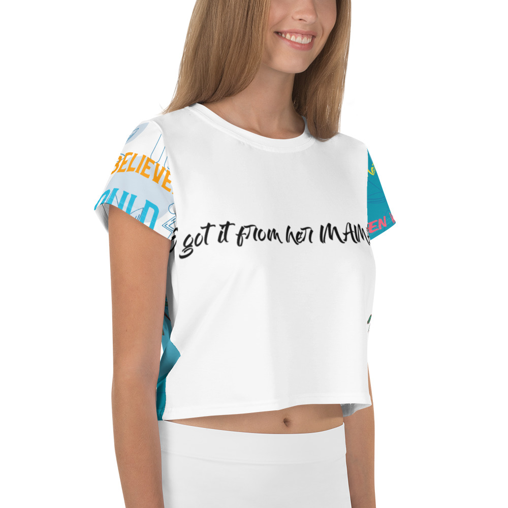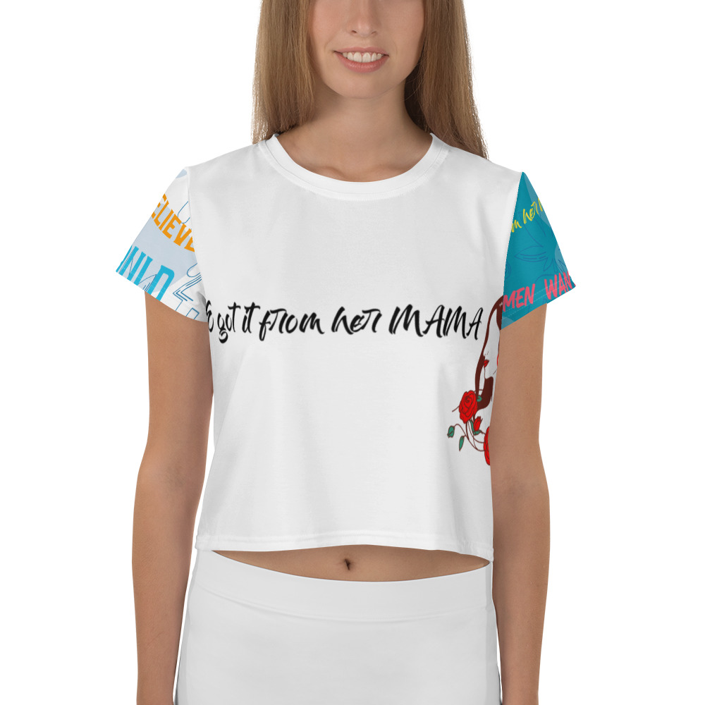 Looking for you next wardrobe favorite? Well, look no further because this crop tee is printed and sewn to fit you just right. To top that off, the original all-over design is definitely worth showing off, so don't hesitate to own one of these tees - they're meant to be adored.