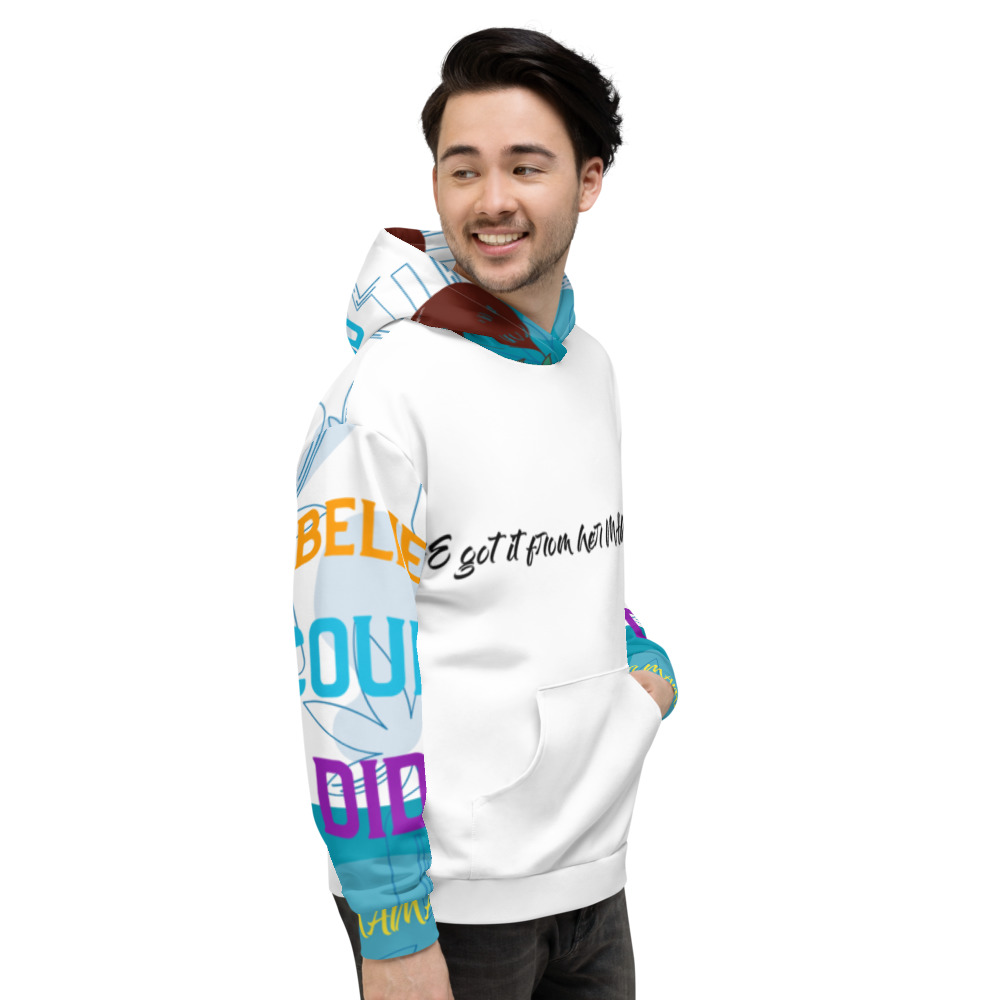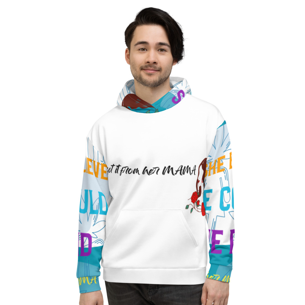 This comfy unisex hoodie has a soft outside with a vibrant print, and an even softer brushed fleece inside. The hoodie has a relaxed fit, and it's perfect for wrapping yourself into on a chilly evening.