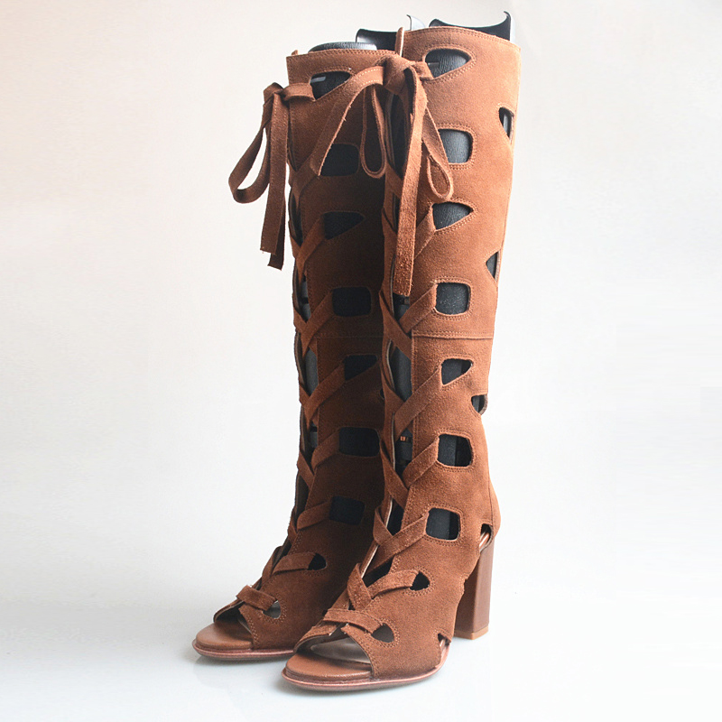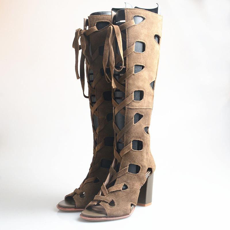 PROVA PERFETTO DERUZA ZAKKA STYLE KNEE HIGH OPEN TOE SANDALS