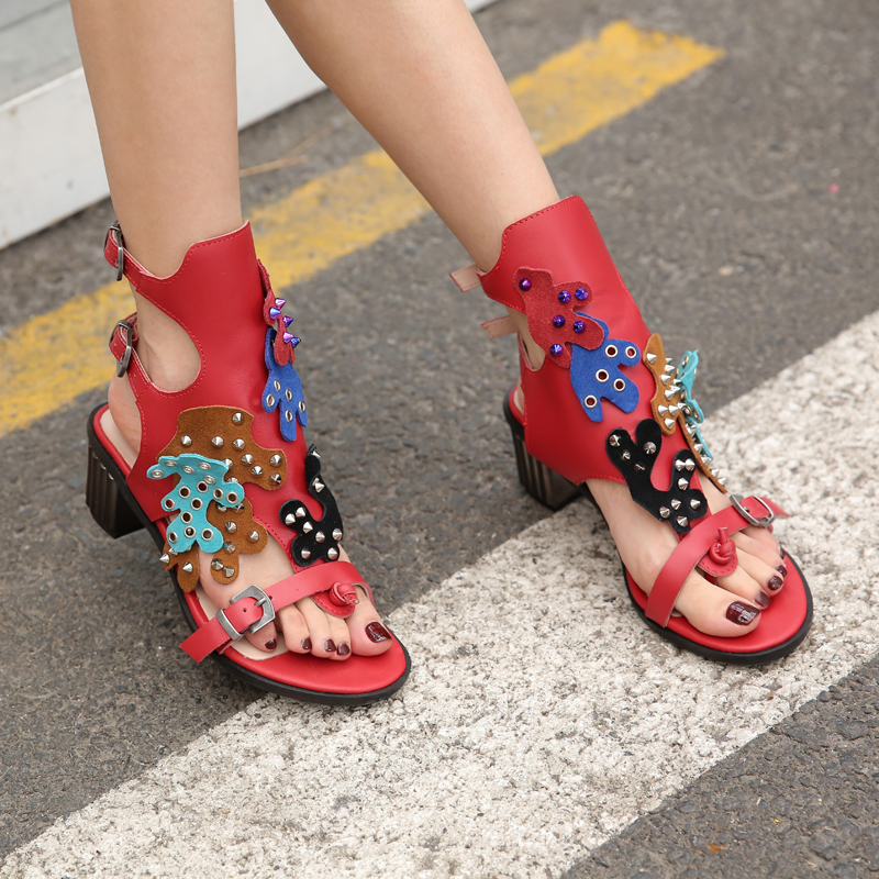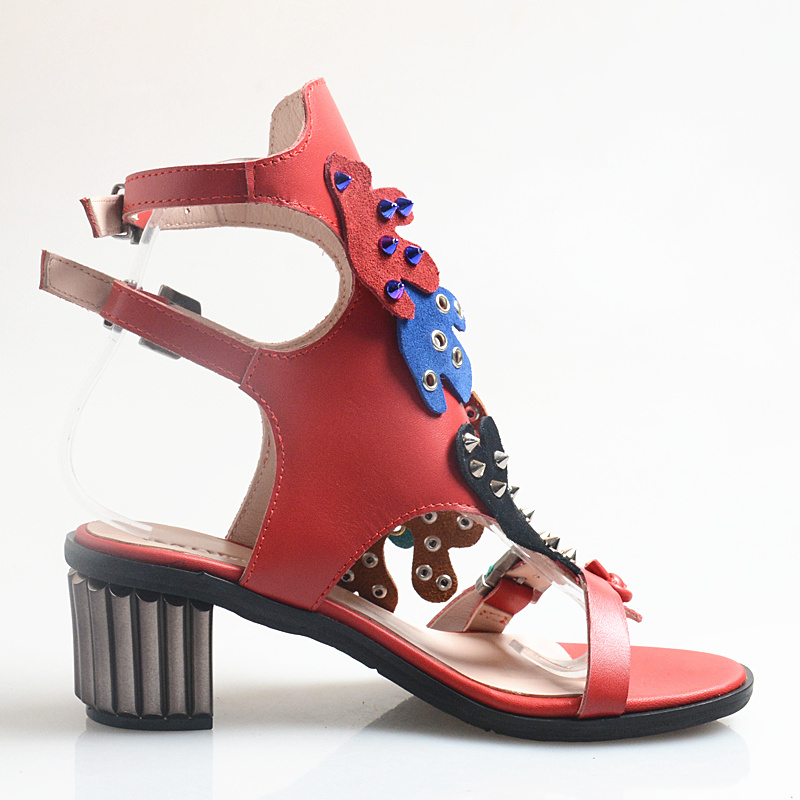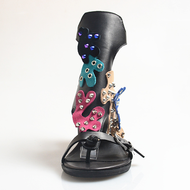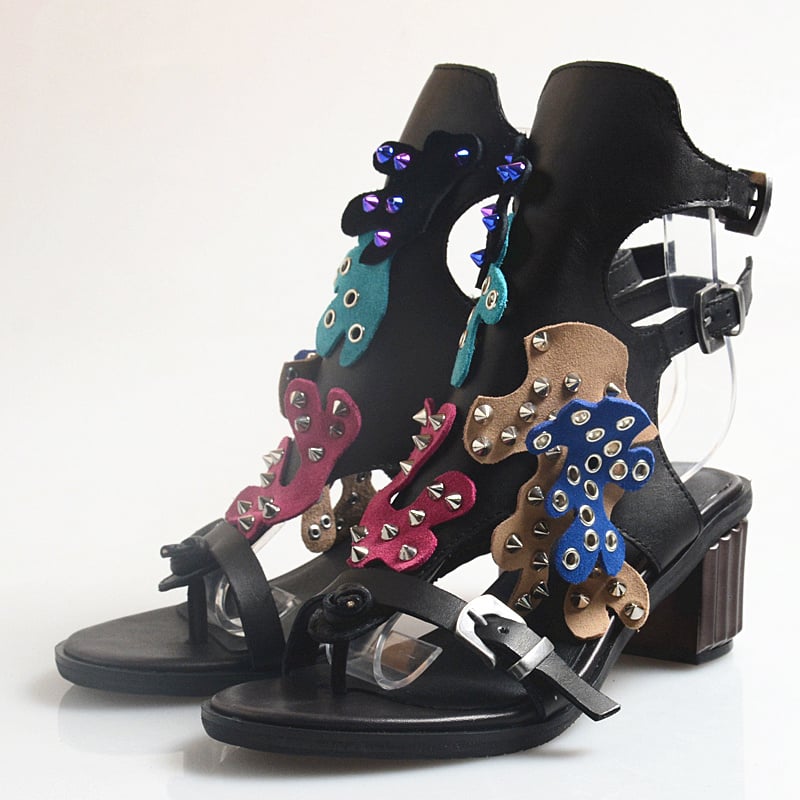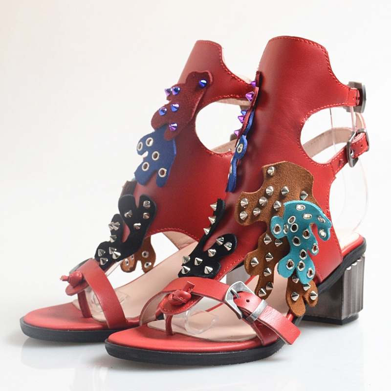 PROVA PERFETTO LISA PERRA MID HEELED LEATHER FLIP FLOP SANDALS WITH RIVET