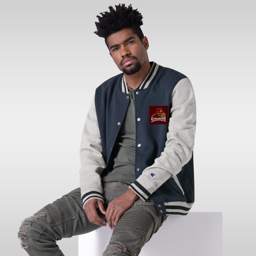 MOBILE LEGENDS INSPIRED KNIGHT SWORDS WITH MEDIEVAL ARMOR EMBROIDERED CHAMPION BOMBER JACKET