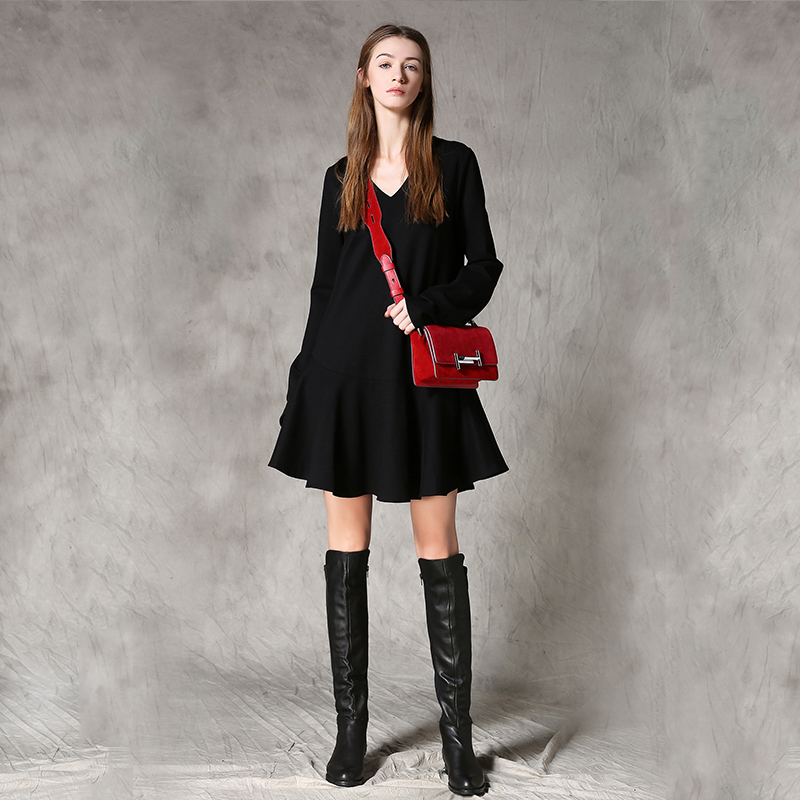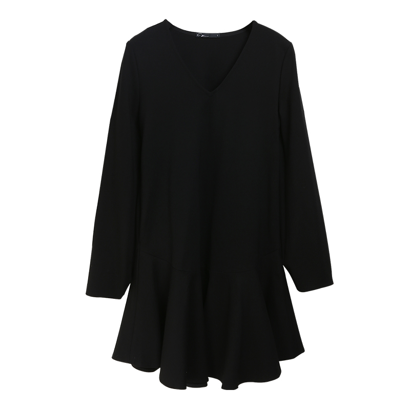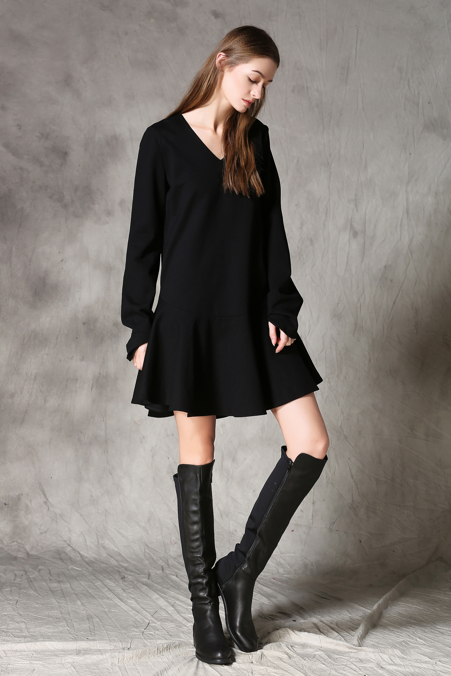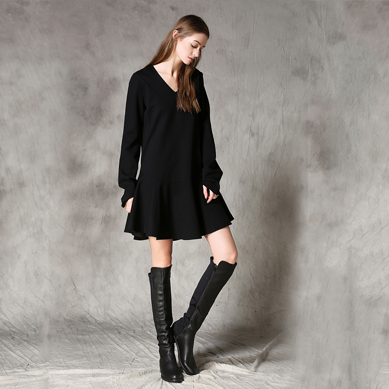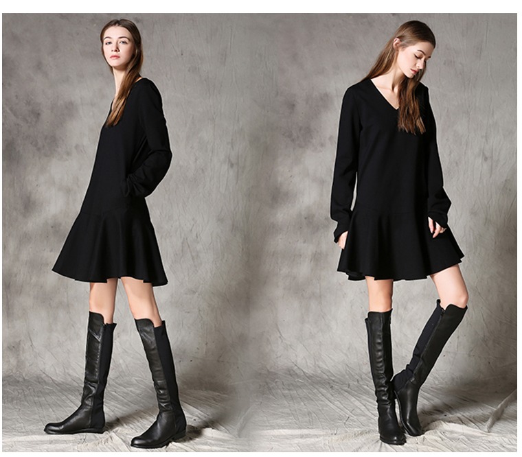 C4MORE HIPSTER MASTER YODA RETRO STYLE V NECK LONG SLEEVE BLACK DRESS