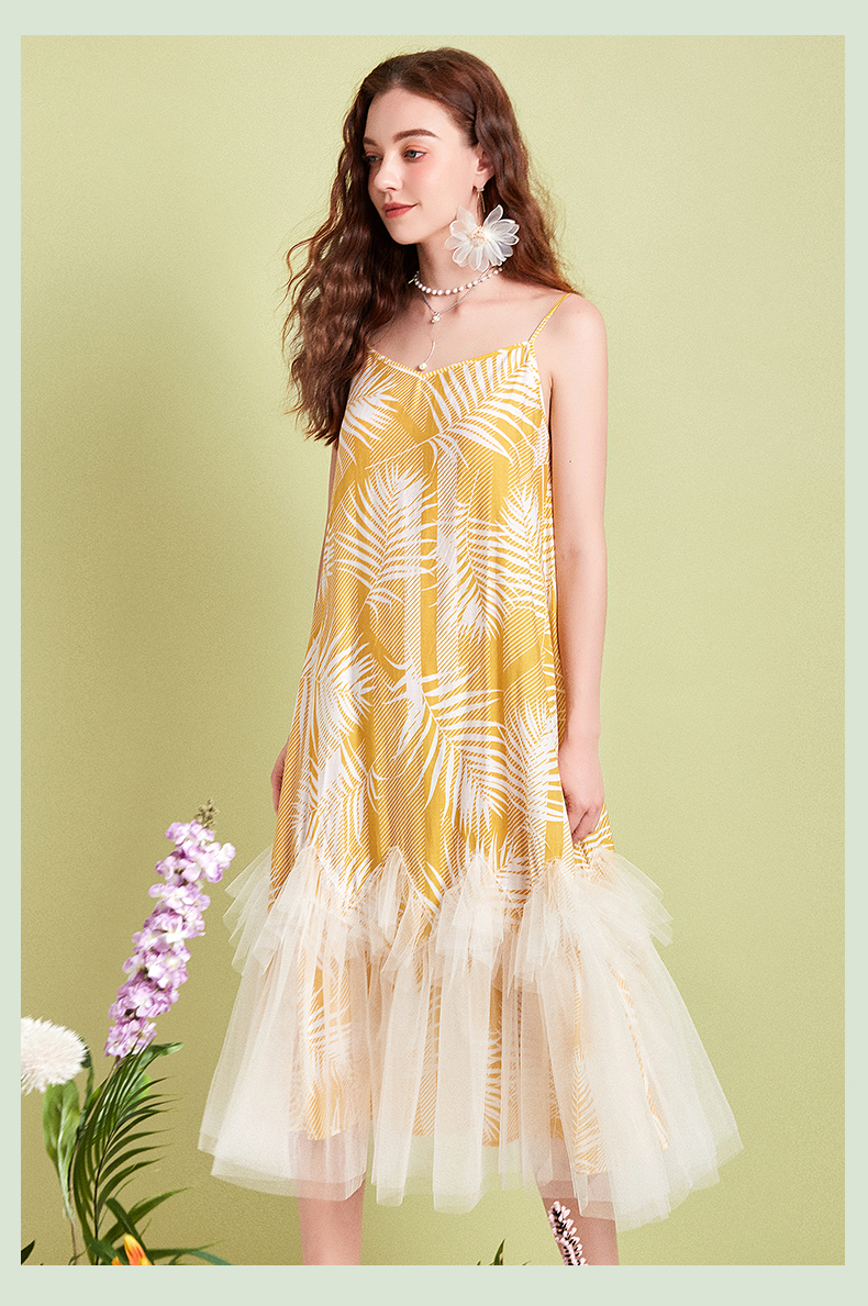 ARTKA MESH PEP HEM CAMI DRESS IN TROPICAL PRINT